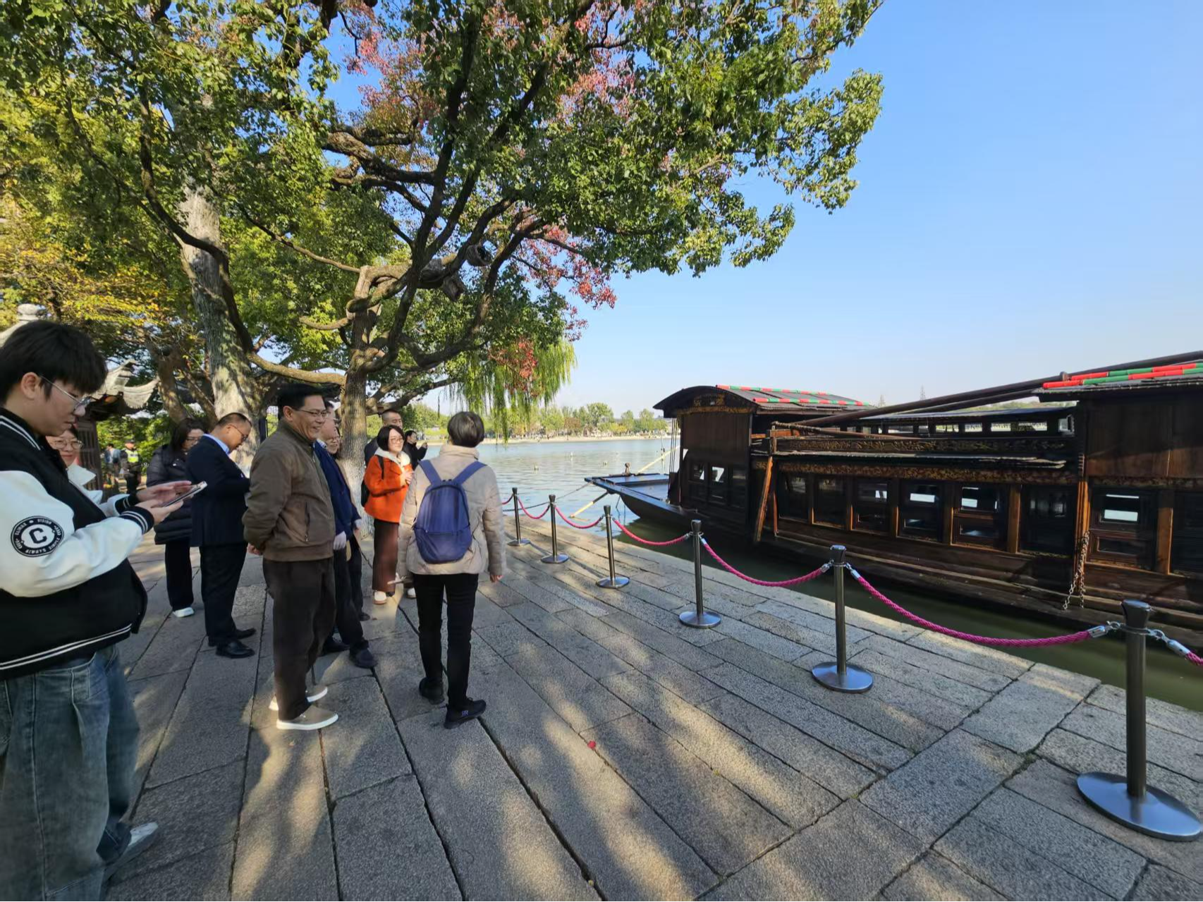 午后,全体人员赴嘉兴南湖开展红色党建教育活动,乘船登临湖心岛,循着革命先辈足迹探寻红色根脉。在南湖红船旁,考察团成员驻足凝视,这艘复刻百年历史的木质画舫形制古朴、庄严肃穆,诉说着1921年中共一大在此召开的光辉历程。随后,大家登烟雨楼凭栏远眺,南湖碧波浩渺,岸边百年古树苍劲挺拔,与朱栏画栋的楼阁相映成景,尽显江南水乡的静谧与庄严。考察团成员不时驻足交流,在沉浸式红色教育中回溯初心使命,结合工作实际畅谈感悟。大家纷纷表示,将以此次活动为契机,把红色基因融入工作实践,以更强的使命担当,为企业高质量发展注入红色动力。