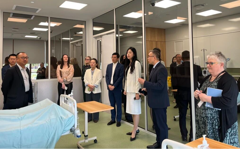 代表团首先到访本迪戈坎培门公立职业技术学院(简称:BKI),在业务总监Trisca Scott Branagan、澳大利亚职评局(VETASSESS)评估总监Matthew Newton、健康和社区服务卓越教育中心主任Ruth Barnes、汽车工程卓越教育中心主任Giulian Di Maggio、联合实训中心主任Bruce Hughes、业务发展主任Katie Proxy、中国办公室主任Rick Zhao等陪同下,先后参观考察了健康和社区服务卓越教育中心、汽车工程卓越教育中心等行业领先的产教融合实训基地,听取教学流程及开展技能人才培训的情况介绍,并现场观摩实践教学展示。