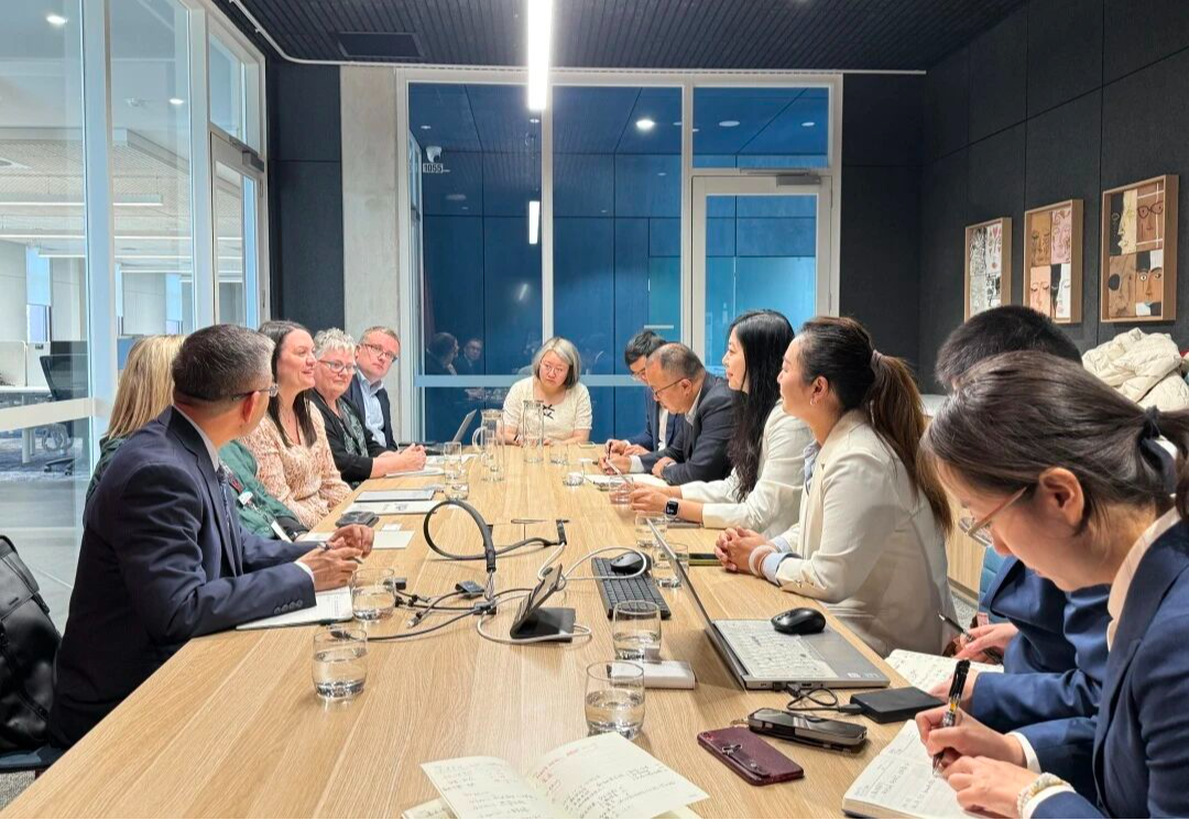 在墨尔本期间,代表团还受邀参访维多利亚州教育部所属墨尔本学习中心,听取维多利亚州高等学校、职业院校与中国的教育合作介绍,了解该中心服务在墨尔本留学生学习、就业等情况,双方还就国际化人才培养等共同关心的内容开展交流。