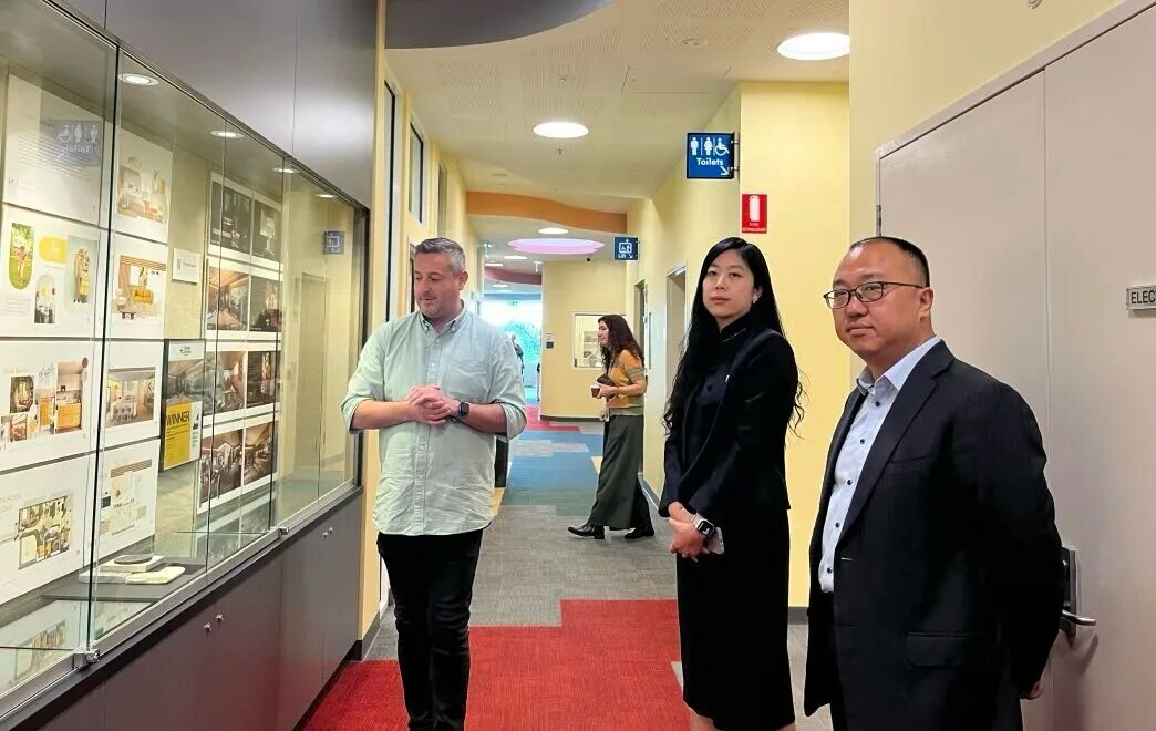 访问墨尔本理工学院期间,代表团受到执行总监Cathy Frazer、副校长Tim Gilbert等学院领导的热情接待。双方对室内艺术设计专业中外合作办学项目成功获批深感欣喜,冯丽伟和Cathy Frazer代表两校签订商务协议,标志着该项目正式启动运行。为高质量推进中外合作办学项目,双方围绕教学计划编制、教师培训等专项议题深入讨论,并一致同意建立教师和学生的互访交流机制。会后,代表团参观了墨尔本理工学院建筑、室内设计相关专业的教学场所,与澳方专业教师开展了教学经验研讨。