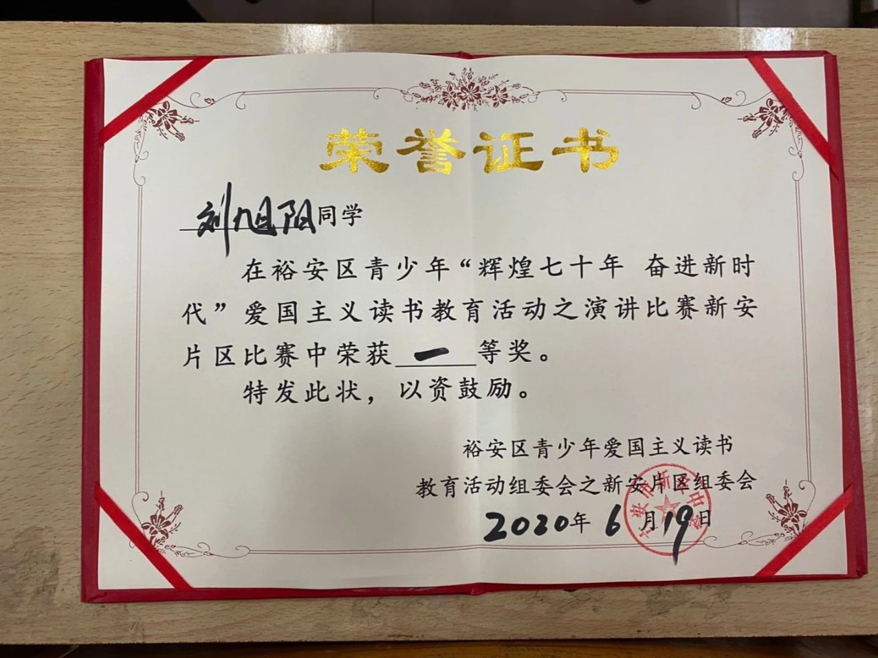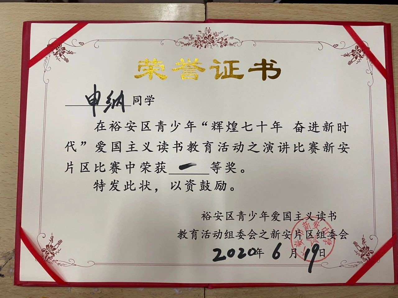 6月19日,裕安区青少年“辉煌七十年 奋进新时代”爱国主义读书教育活动之演讲比赛新安片区比赛在新安中学隆重举行,我校高二学生刘旭阳、申纳不负众望,分获中学男子组、女子组第一名的好成绩。