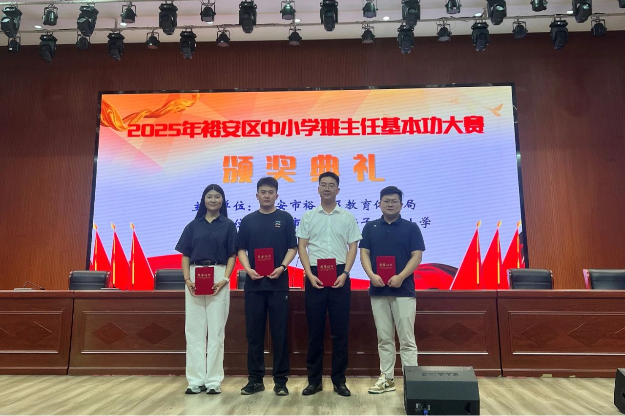 在之前6月底结束的裕安区2025年中小学班主任基本功大赛中,我校4名参赛班主任教师龚辉、石允森、冶文、吴锐从全区各中小学89名参赛班主任中脱颖而出,喜获佳绩。其中,龚辉老师和石允森老师更是以裕安区高中组一等奖顺利晋级市赛。