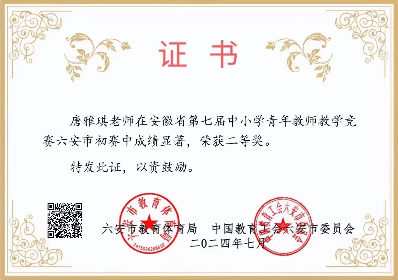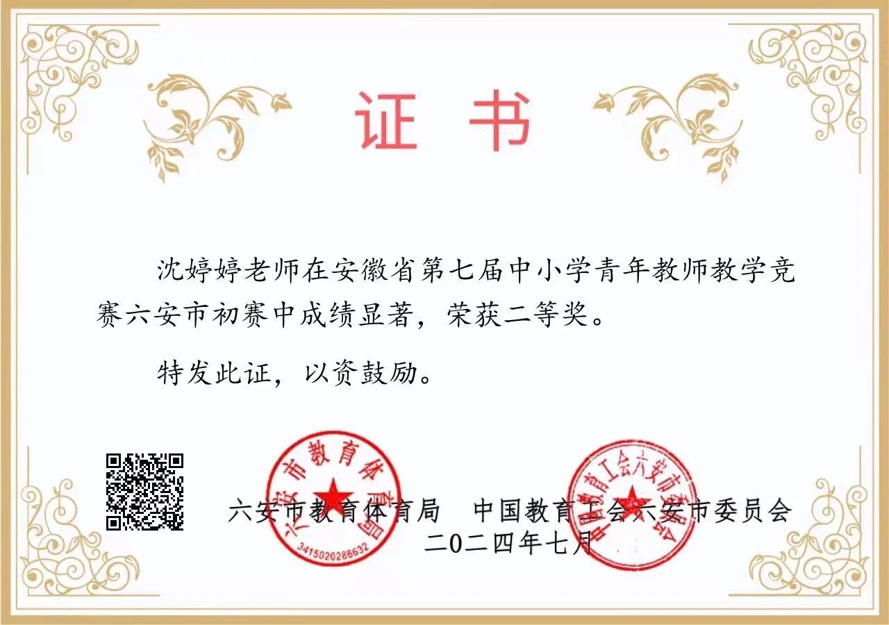 近日,六安市教体局、中国教育工会六安市委员会公布了安徽省第七届中小学青年教师教学竞赛六安市初赛结果,六安实验高级中学沈婷婷老师、唐雅琪老师双双荣获全市二等奖!