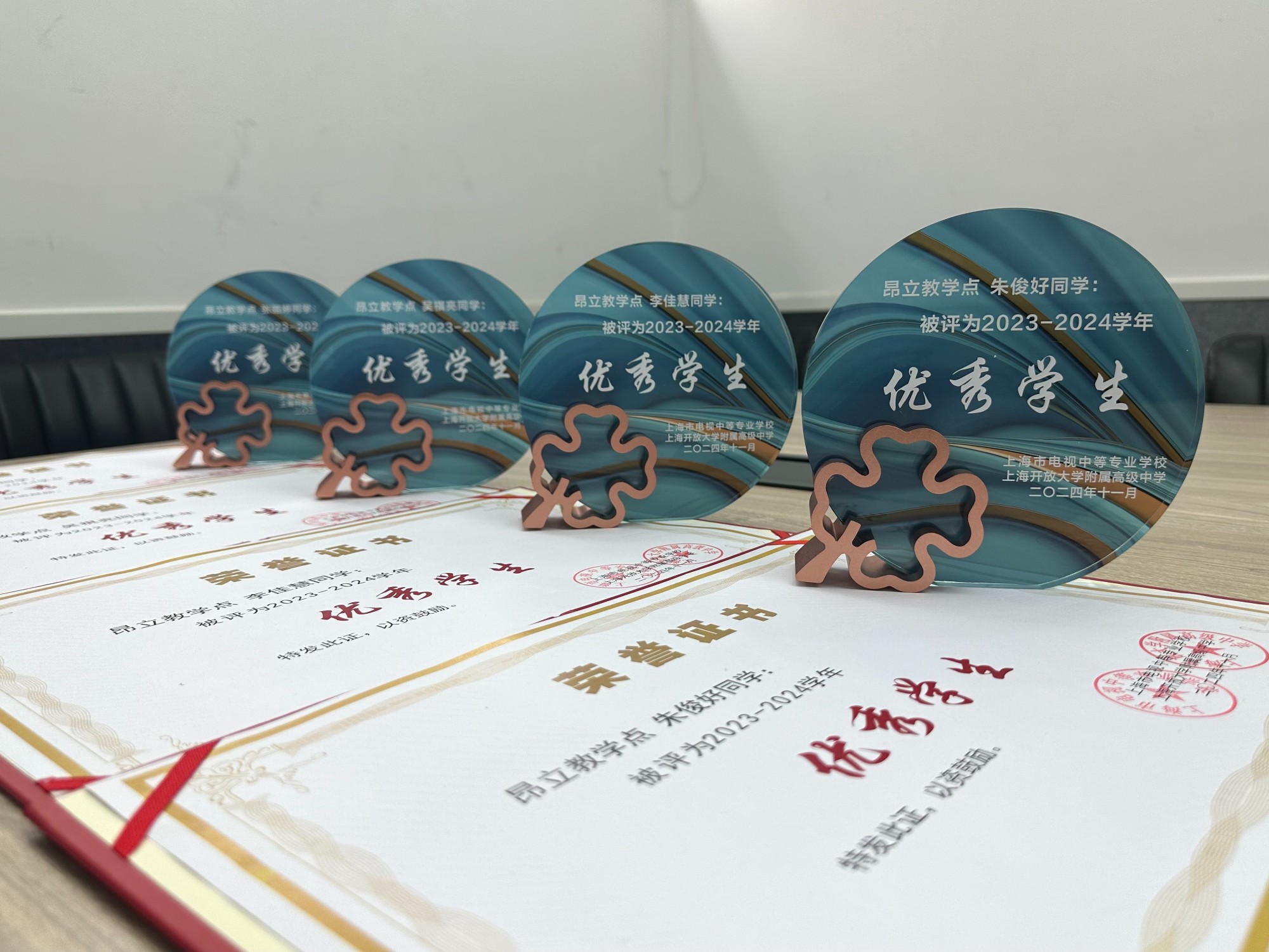 近日,上海开放大学附属高级中学昂立教学点吴祺亮、朱俊好、李佳慧、张皓婷四位同学荣获“上海开放大学附属高级中学优秀学生”奖项。本校于11月27日举办了颁奖仪式,沈淑华书记、班主任孙佶、邵剑菁、昌婷、胡晟庚等老师出席仪式。