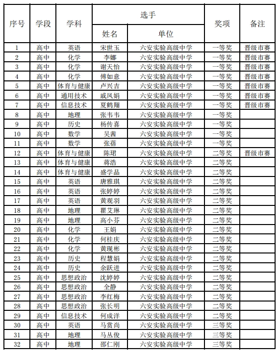 荣获一等奖教师晋级市赛教师