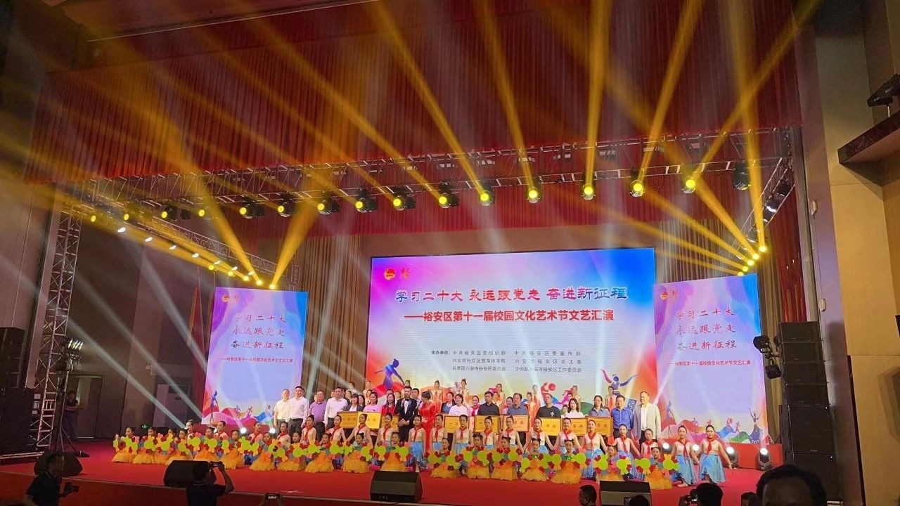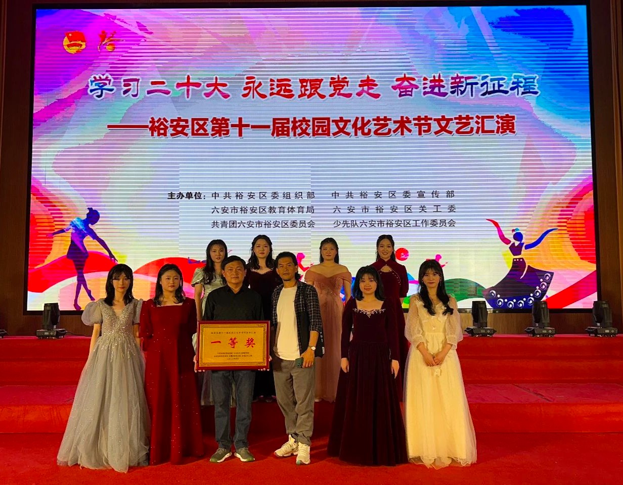 为进一步丰富校园文化生活,营造积极向上、健康文明的校园文化氛围,充分展示裕安区素质教育成果,4月16日,区教体局联合区委组织部、区委宣传部、区关工委、团区委等多家单位,在区三馆一中心共同主办开展了以“学习二十大 永远跟党走 奋进新征程”为主题的裕安区第十一届校园文化艺术节及素质教育成果展示活动。我校作为全区唯一一所高中学校参加了此次文艺汇演并荣获一等奖。