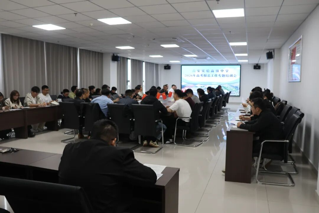 为扎实做好2026年高考报名工作,落实落细上级主管部门相关部署要求,确保报名各环节工作顺利进行,10月15日上午,六安实验高级中学召开了2026年高考报名工作专题培训会。党委书记、副校长严寒,信息技术组组长夏鹤翔参会,新老校区高三年级全体班主任齐聚一堂,会议由老校区高三年级部副主任姬通主持。