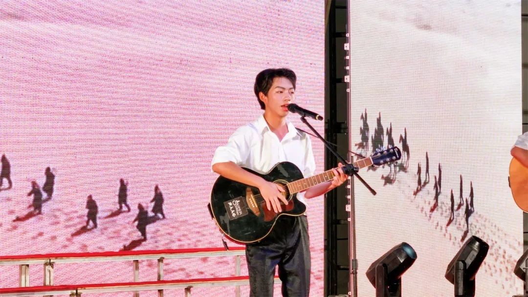 一首《对花》黄梅戏曲调既绚丽又婉约,将传统文化艺术之美展现得淋漓尽致;《我们的时光》吉他弹唱悠扬婉转,动人心弦;双人朗诵《致橡树》中的“木棉”和“橡树”的形象让我们体会到一种细腻委婉而又深沉刚劲的情感;女生小合唱带来充满了浓浓思乡情的《梨花又开放》,歌声如春风拂面,似清泉流淌于心。