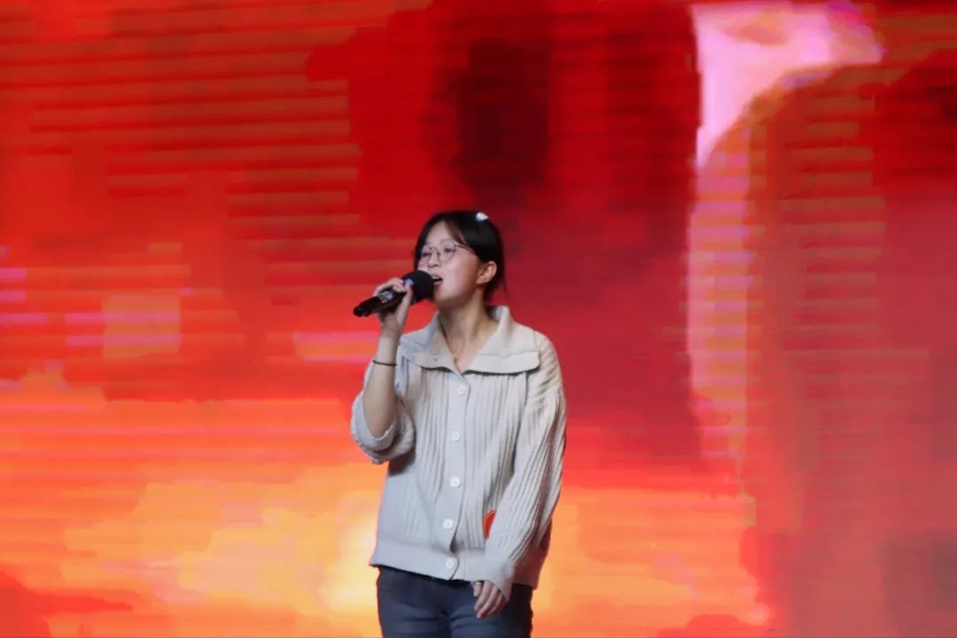 猜歌游戏结束后,教师组闪亮登场,王雪瑶、刘小融、刘露露三位老师歌声高亢激昂、清晰悦耳、真挚爽朗,各具特色,向大家展现出了语文老师的别样风采;杨倩老师带来一首经典的英文歌曲,引起全场大合唱,活泼可爱的台风和流利的唱腔,获得学生们的喜爱;沈婷婷老师的一首粤语歌曲《月半小夜曲》,音色独特,饱含深情,并为2024届高三学子送去了美好祝愿;龚辉老师带来吉他弹唱《故乡》,温柔的前奏流入磁性的歌喉,唱出家乡情,歌出家乡爱,将现场热烈的气氛推向高潮。
