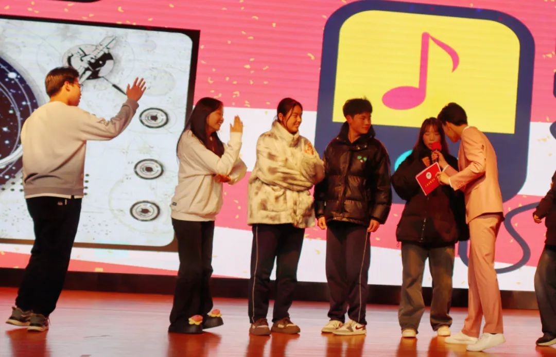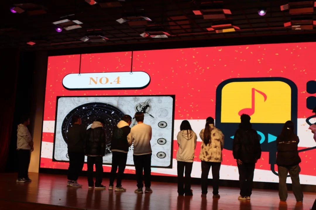 随后进行的是猜歌环节。主持人简单介绍了游戏规则后,同学们纷纷上台参与猜歌,为决赛现场舒缓了紧张的竞争氛围,增添了更多的欢乐。