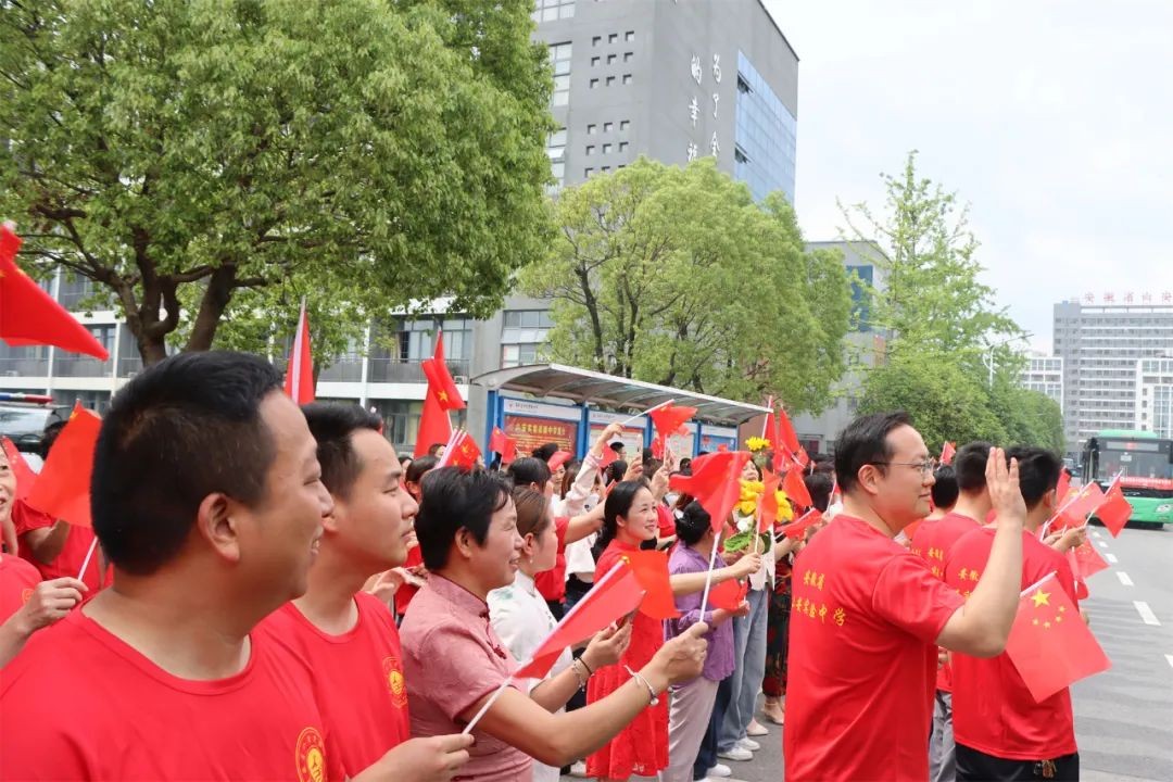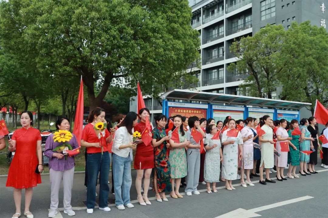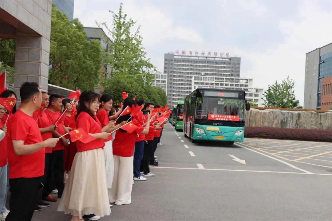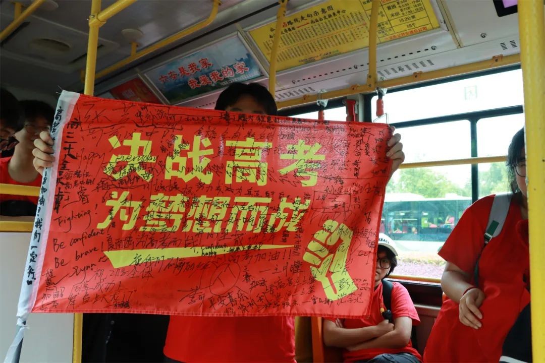 6日下午,是熟悉考场的日子。全体校领导、中层干部、高三教师身穿寓意“开门红”的红色文化衫,在校门口给高三学子们加油鼓劲:轻装上阵,不急不躁;笑傲考场,信笔挥毫。陪伴了学生三年的生活老师身穿寓意“旗开得胜”的旗袍,与初中部学弟学妹们一起为考生送上暖心的祝福:考试顺利,金榜题名!