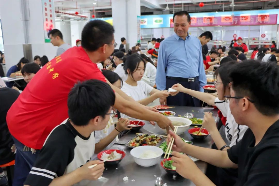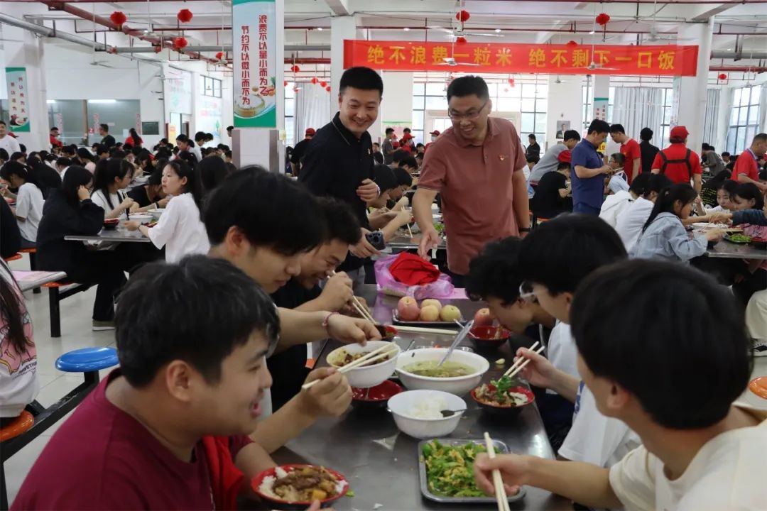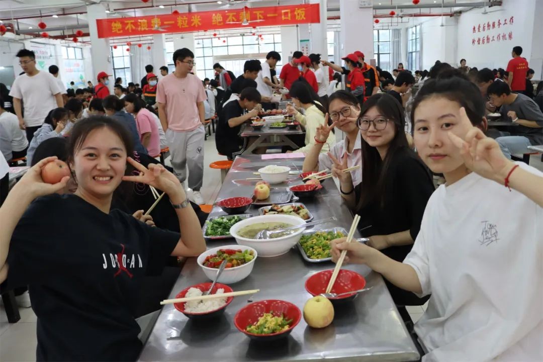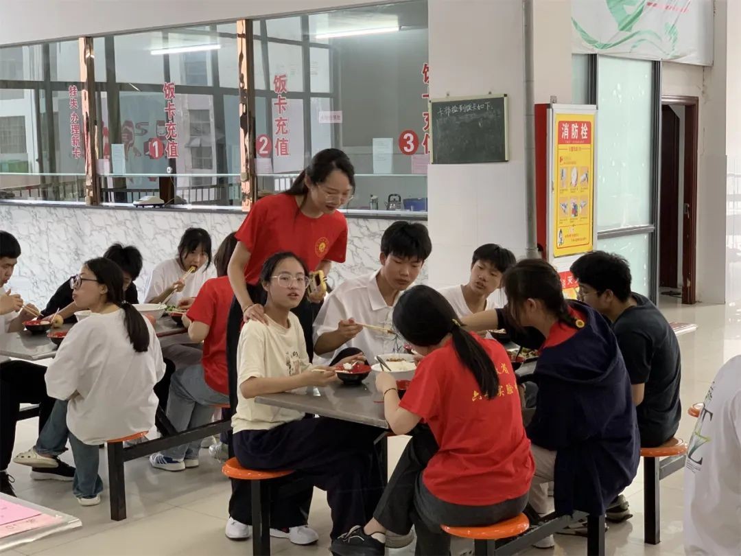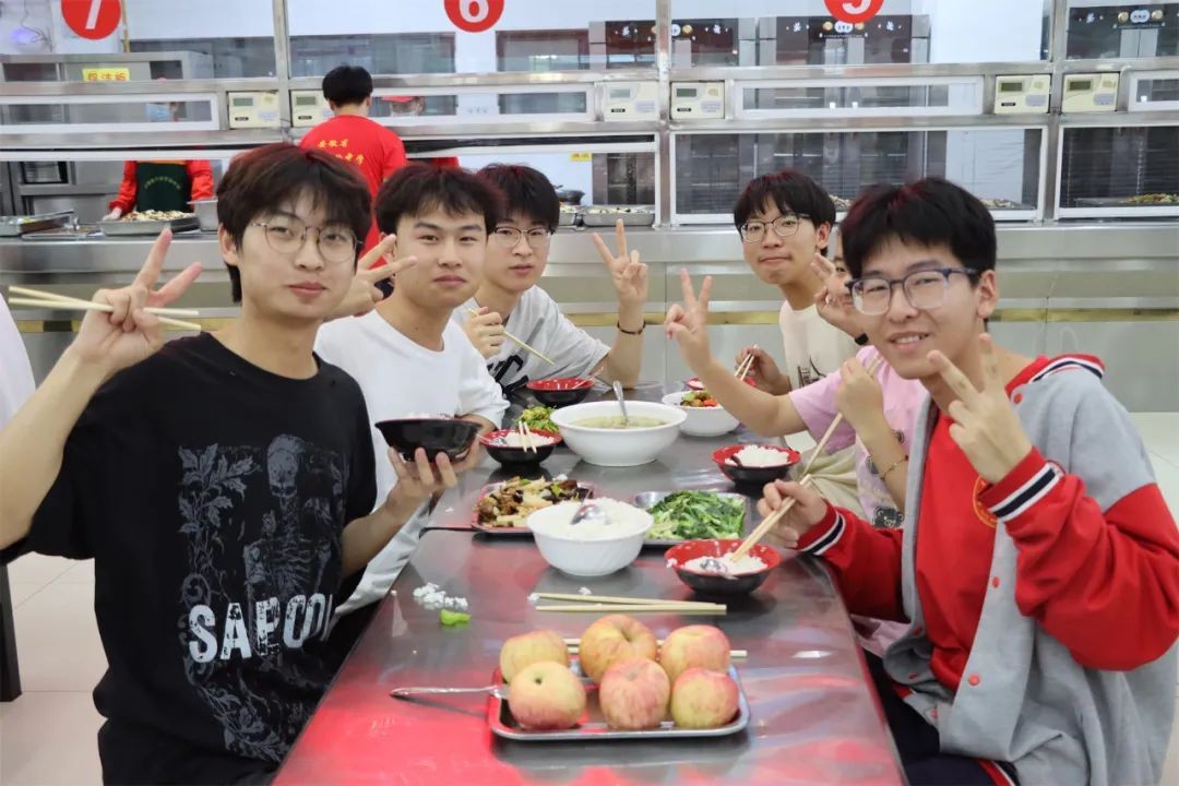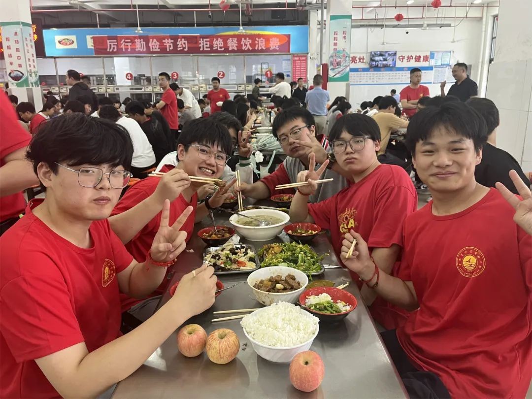 下午5时许,一道道荤素搭配、营养均衡的饭菜已经摆上了桌。从考场回来的考生们有序就坐,欢快地品尝着美味的佳肴。学校食堂从菜品选择、食材选购、食物烹饪和餐具消毒等各环节严格把控,精益求精,力求以最可口的饭菜为考生提供最优质的服务。校领导和班主任穿梭在各个桌间,替他们加饭、添菜、盛汤。师生同桌温馨一刻,传递着浓浓的爱意。