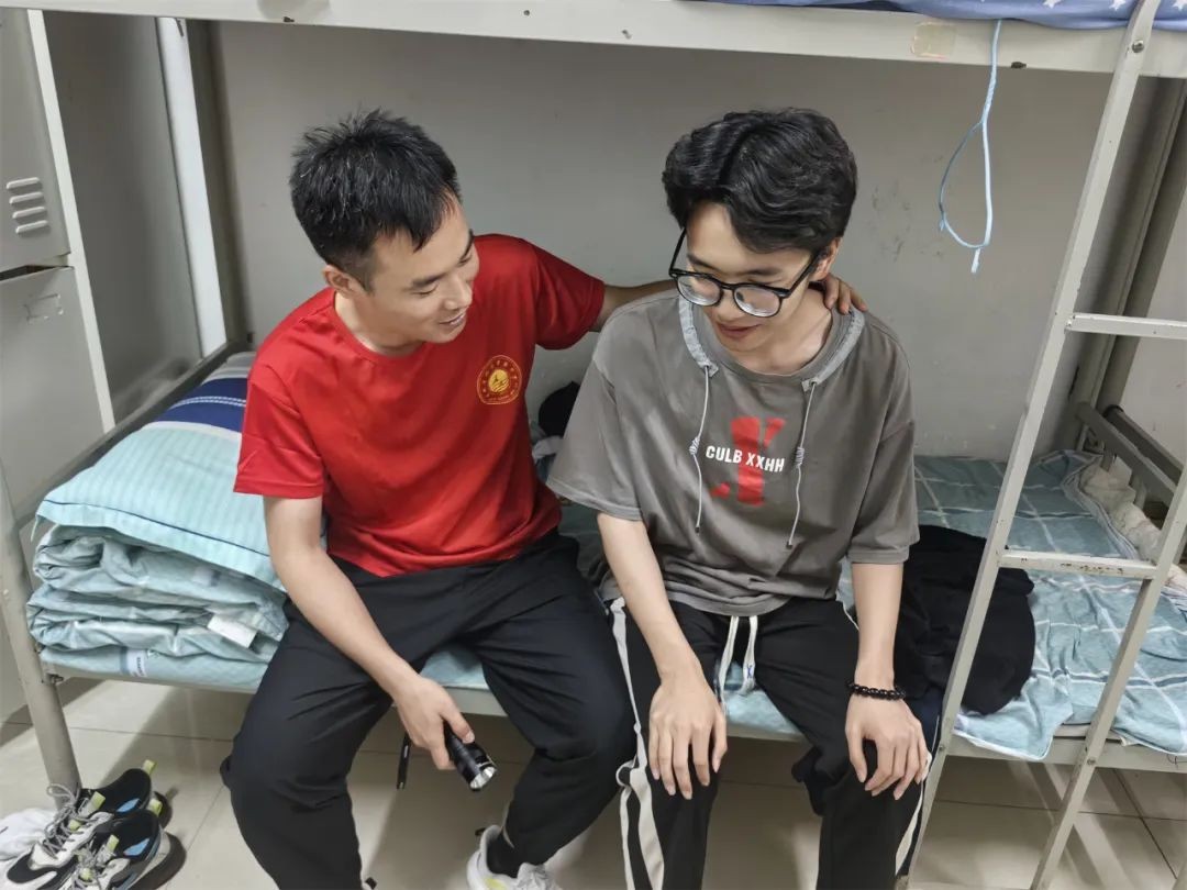 晚自习结束后,学生回宿舍洗漱休息。生活老师贴心关怀,为考生提供一切力所能及的帮助。班主任巡视本班各个宿舍,与考生沟通交流,为部分略显紧张的同学进行心理疏导,鼓励他们放松心态,自信高考。