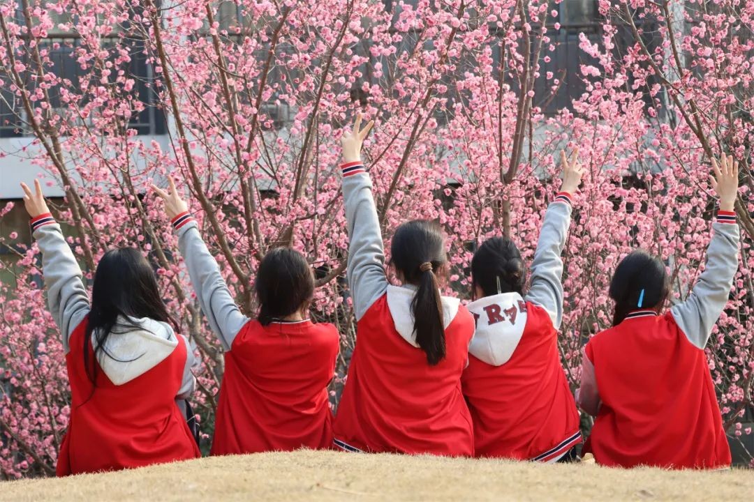 天色澄明 芳菲正盛 繁花蘸着春风写下粉红的寄语 是实验少年脚步下的步步生花 我们与春天 在琅琅书声里撞个满怀 随风抖落的是春日物语 书香 花意 正青春