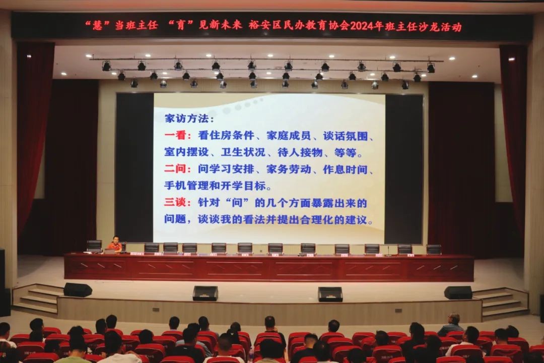 9月12日,由裕安区民办教育协会主办的以《“慧”当班主任 “育”见新未来”》为主题的2024年班主任沙龙活动在我校举行。此次活动汇聚了区内各高中的优秀班主任代表,共同探讨新时代背景下班主任工作的新思维、新策略、新方法,大力弘扬教育家精神,有力推进班主任队伍建设。