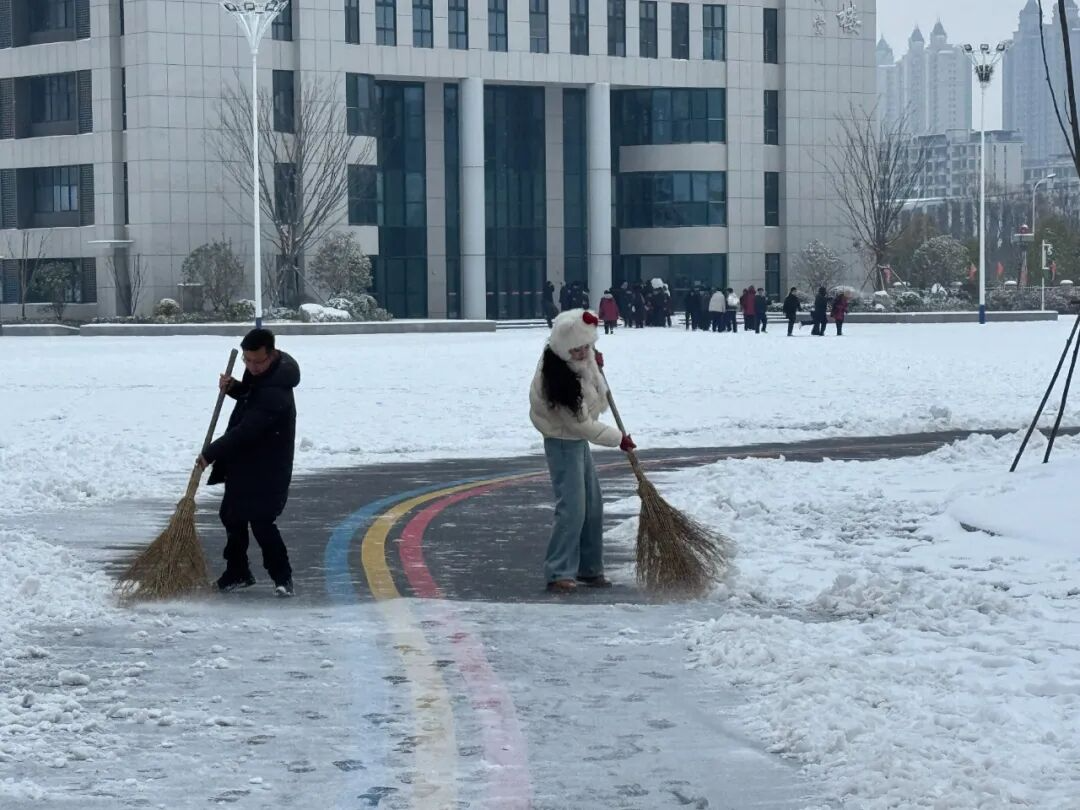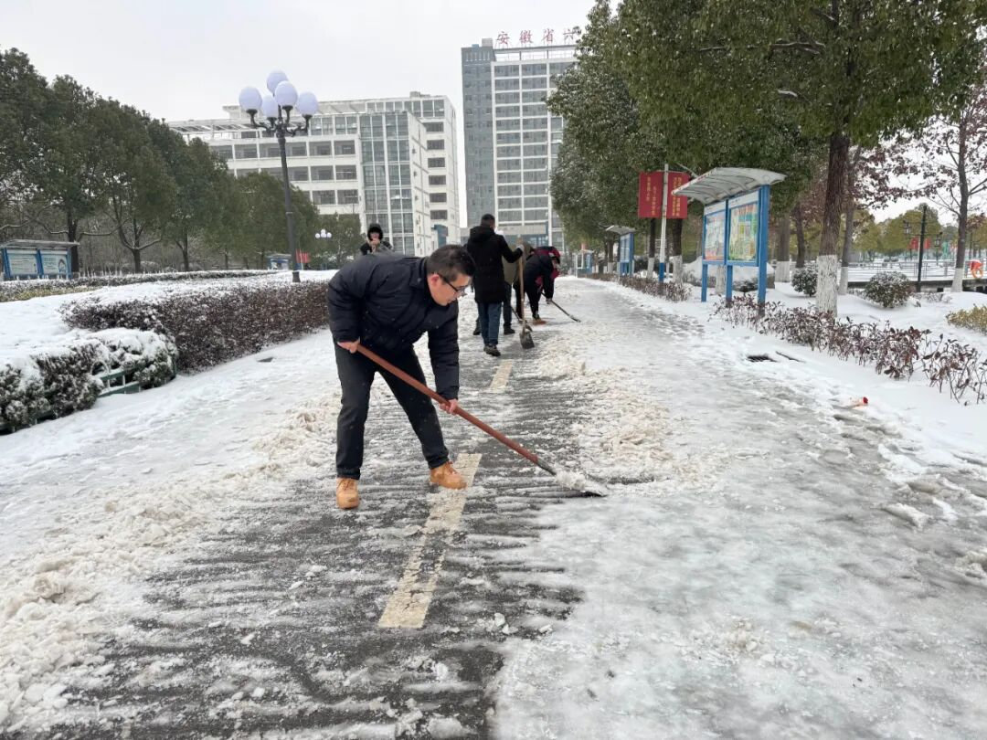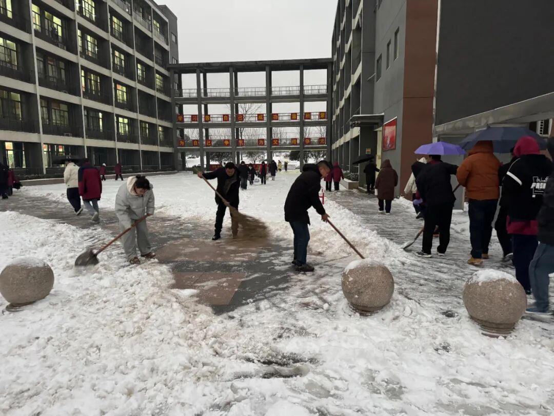 为确保校园道路畅通、保障师生出行安全,六安实验高级中学新老校区积极响应市铲雪除冰倡议,在集团党委、两校区党支部、校长室的带领下,学校党员干部、各级部、处室中层干部、部分班主任组成铲雪除冰突击队,以雪为令,踏雪而战,开辟出一条条洋溢着温情的通畅之路,守护平安校园。