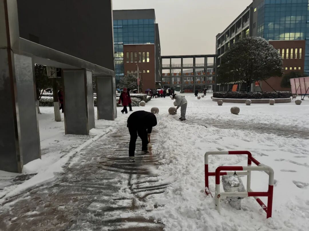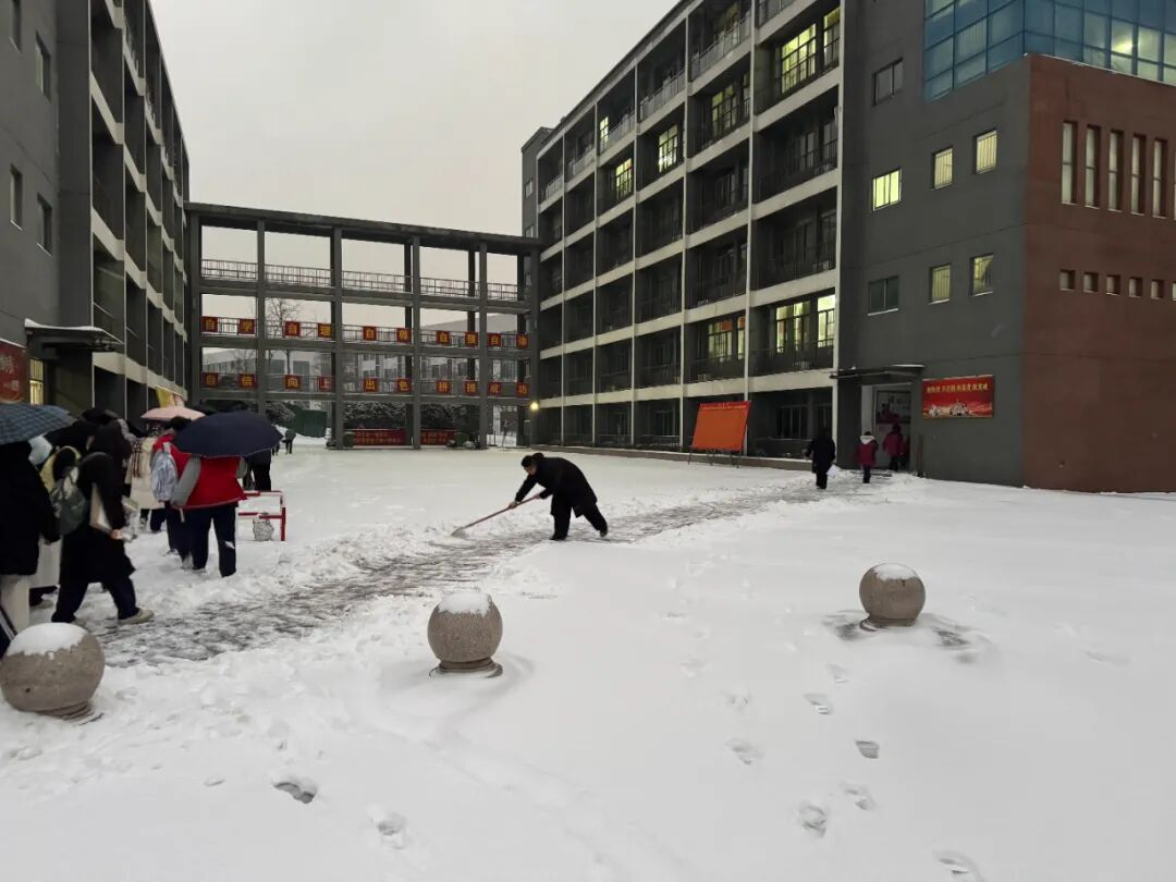 “行动是最好的融雪剂”,大家分工明确、齐心协力,校门口、校园主干道,师生们的必经之路上,到处都是认真而忙碌的身影。有的挥动铁锹,有的奋力扫雪,有的清理坚冰,大家配合默契,干劲十足。