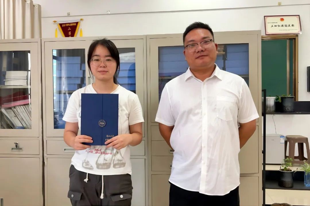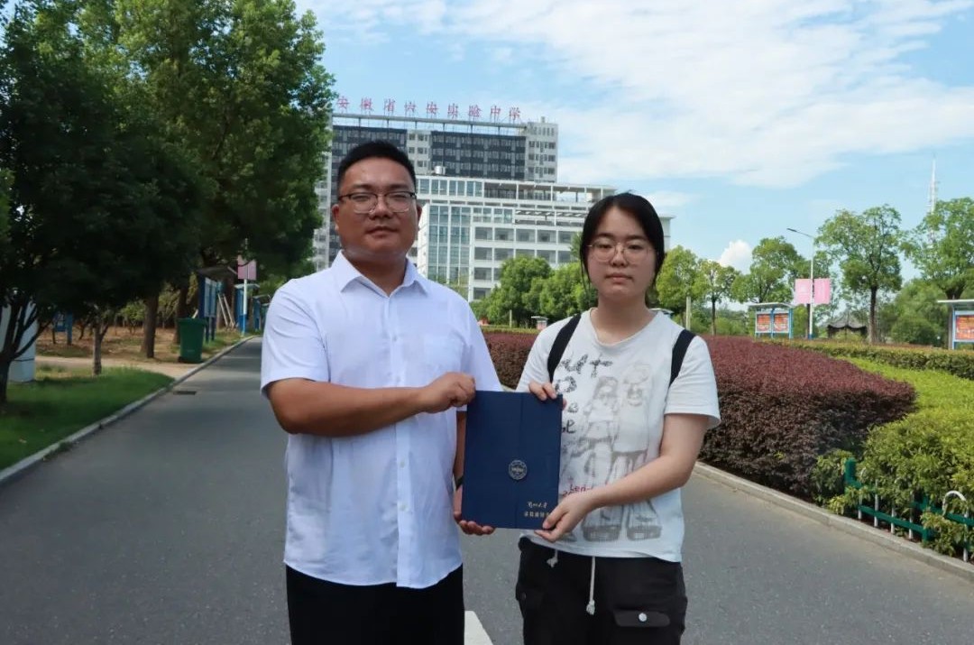 近日,2024届第一封录取通知书投递至六安实验高级中学,这封通知书的主人是我校2024届高三18班李甜甜同学,录取院校兰州大学。她和她的班主任老师——高三年级部副主任徐杰一起来到学校正式领取通知书。