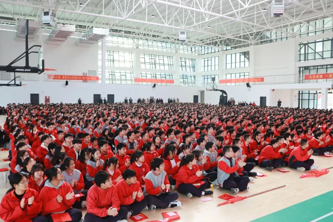 十八成年立壮志,战鼓催征铸辉煌。为激发高三师生冲刺高考的雄心壮志,坚定决胜高考的信心,3月13日上午,我校2024届高三年级成人礼暨高考冲刺动员大会在新校区体育馆隆重举行。大会特邀上海交大教育集团总裁王永辉,安徽天河教育集团董事长张运来携全体校级领导班子出席大会,高三全体师生齐聚一堂,大会由校团委书记汪鹏主持。