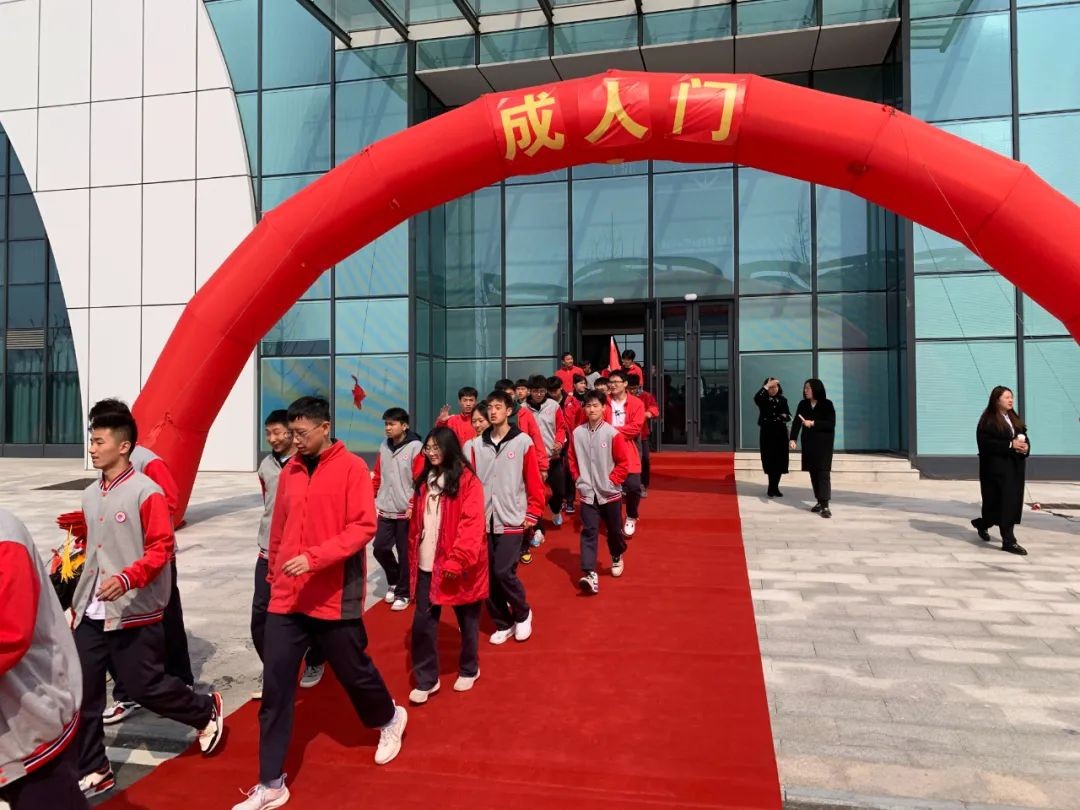 鸣响十八岁钟声,吹响十八岁的号角。台上领导和全体高三班主任、教师为学生戴成人帽。它意味着从此以后,同学们将承担更大的责任和使命,这是我们人生中一个新的里程碑,也是人生旅途中一个新的起点。