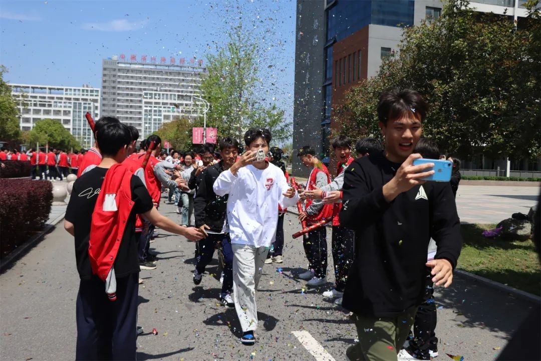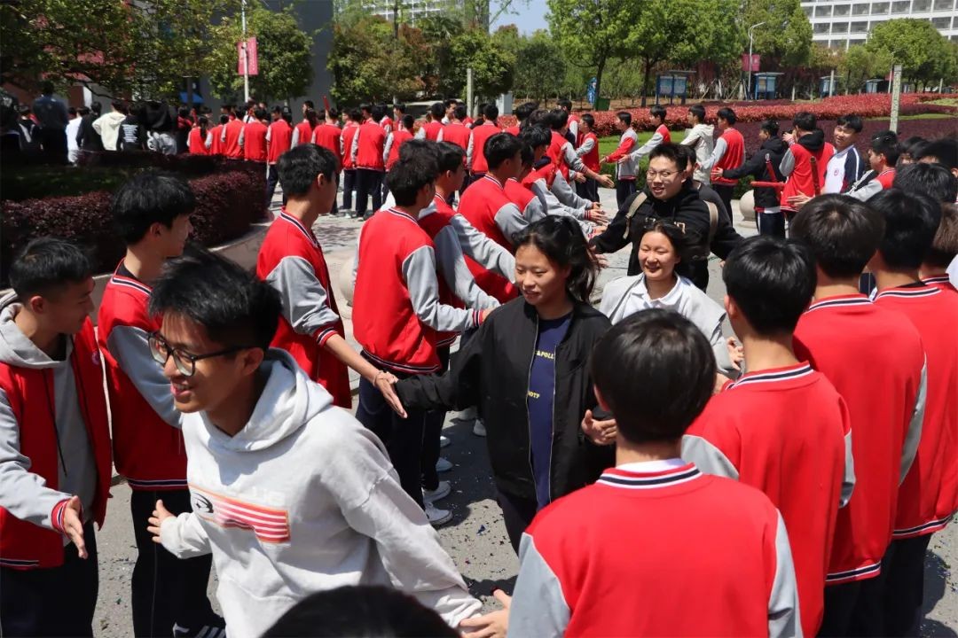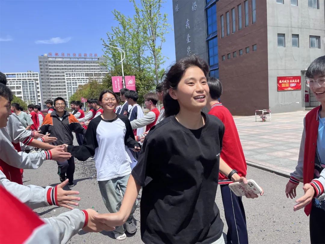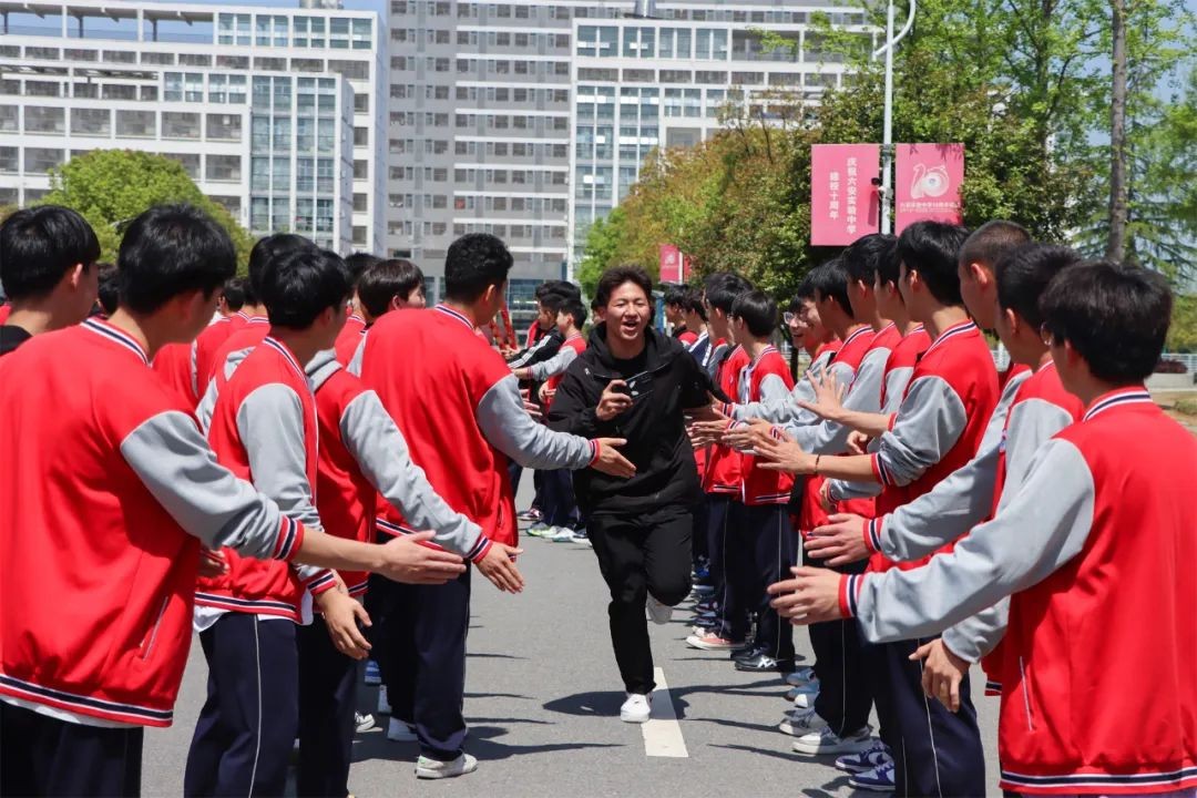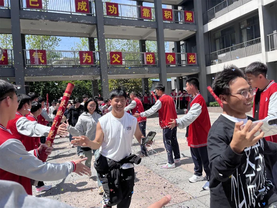 高一、高二的学弟学妹们夹道欢送师兄师姐,制作了标语横幅,准备了手持彩炮,为他们加油鼓劲。体育生们迈着坚定的步伐,一路击掌,挥手致意,祝福声、呐喊声响彻校园,令人热血沸腾。