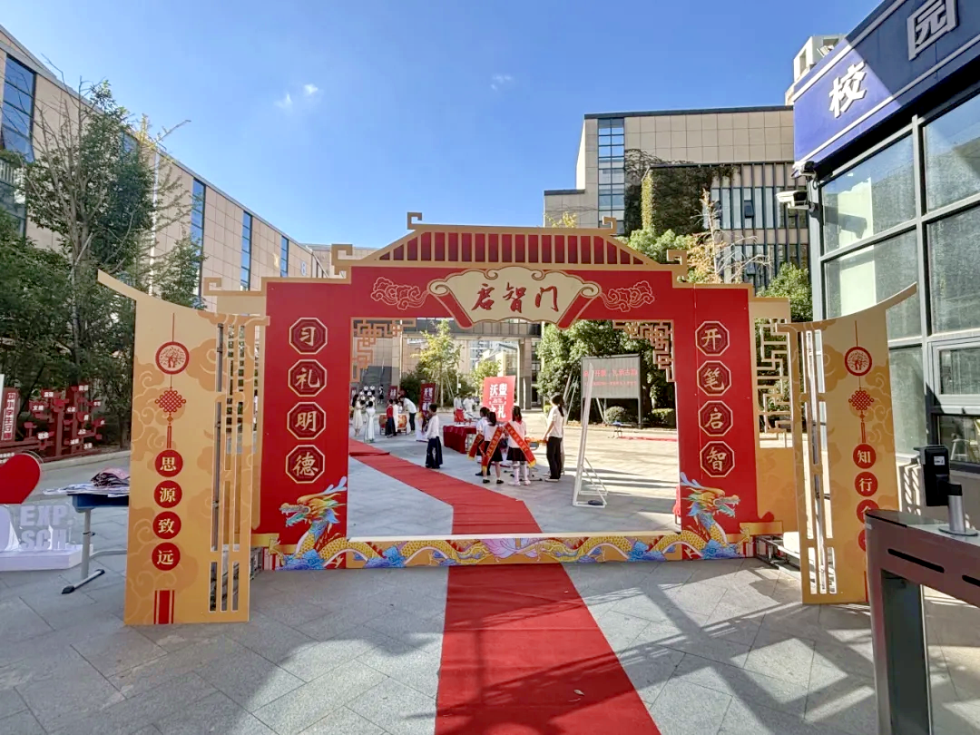 校园内,龙坎矗立、启智门静候。新生们在老师指引下,依次跨龙坎、入启智门 —— 跨坎寓意不惧困难,入门象征开启智慧。孩子们攥紧小拳头,满脸认真地迎接新挑战。