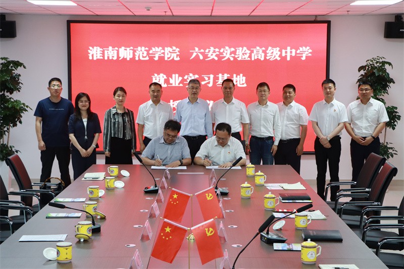 座谈会后,六安实验高级中学党支部书记严寒、淮南师范学院就业创业工作处处长孙振分别代表两校签订了就业实习基地共建协议书。