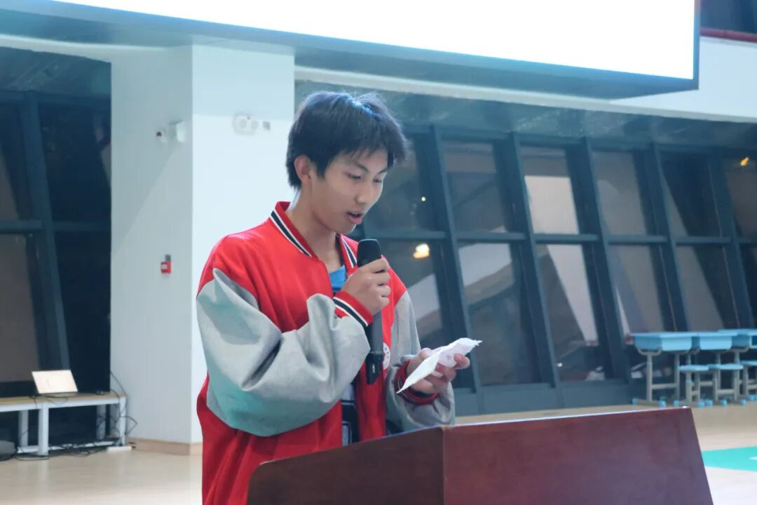 紧接着,运动员代表高一(39)班李俊杰同学庄严宣誓。他代表所有参赛队员承诺,将发扬“友谊第一,比赛第二”的体育精神,在赛场上服从裁判、尊重对手、赛出风格、赛出水平,充分展现我校学生的良好素质和竞技水平。