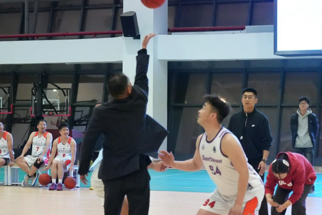开幕式最引人注目的环节当属“师生篮球PK赛”。由各年级教师组成的教职工联队与校学生篮球队联袂奉献了一场精彩绝伦的揭幕战。比赛中,老师们经验老道,配合默契;学生们活力四射,身手敏捷。双方你来我往,攻防转换迅速,精准的投篮、巧妙的传球、激烈的抢断精彩不断,赢得了现场观众的阵阵喝彩。最终,教师队以92:86的比分获胜。这场别开生面的PK赛不仅拉近了师生距离,更点燃了同学们对篮球联赛的高昂热情。