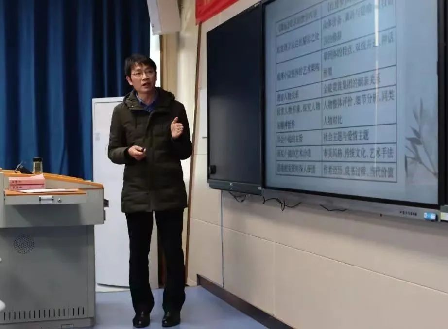 接着是董文老师的微专题讲座《整本书阅读教学的辨证艺术——以<红楼梦>为例》。董老师结合自己整本书阅读的教学实践,分别从取与舍、点与面、深与浅、多与少、动与静、内与外六组辩证关系深入阐释了对立统一规律在整本书阅读教学中的运用艺术。让我们在整本书阅读中能有的放矢、重难点突出、各个击破。