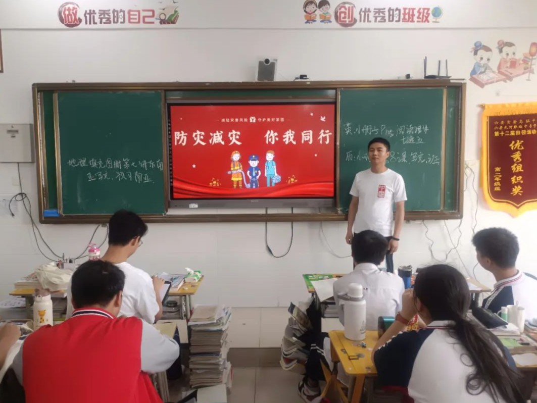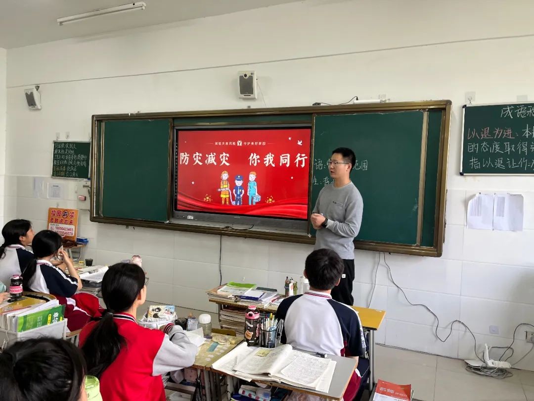 5月12日早读课上,各班召开主题班会。班主任借助生动直观的图片,向学生们讲述了地震的形成、地震的破坏性以及引起地震的主要原因等,并对突发地震灾害的自救知识、逃生要领及注意事项等知识进行了详细地讲解说明。