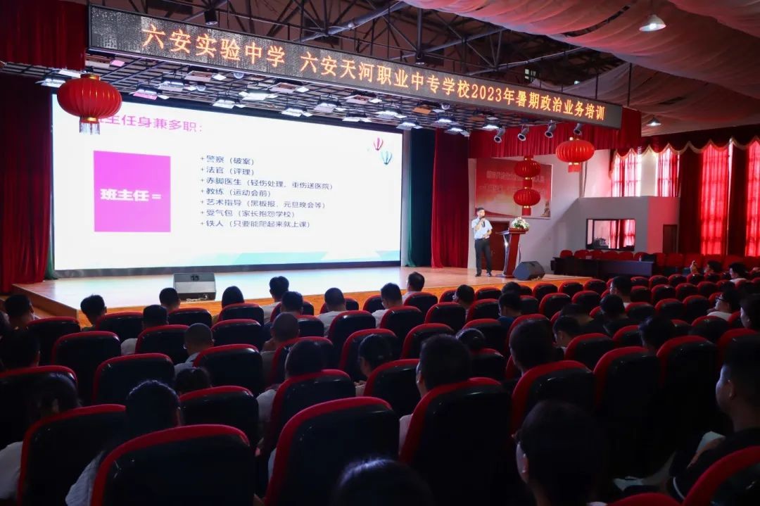 班主任是学校德育工作的灵魂,是学校工作的核心力量。为交流班级管理优秀经验,推进班主任队伍建设,助力班主任专业发展,8月20日上午,六安实验中学、六安天河职业中专学校举办了第十届班主任论坛。论坛由副校长钟楼主持,全体班主任及新入职教师参加。