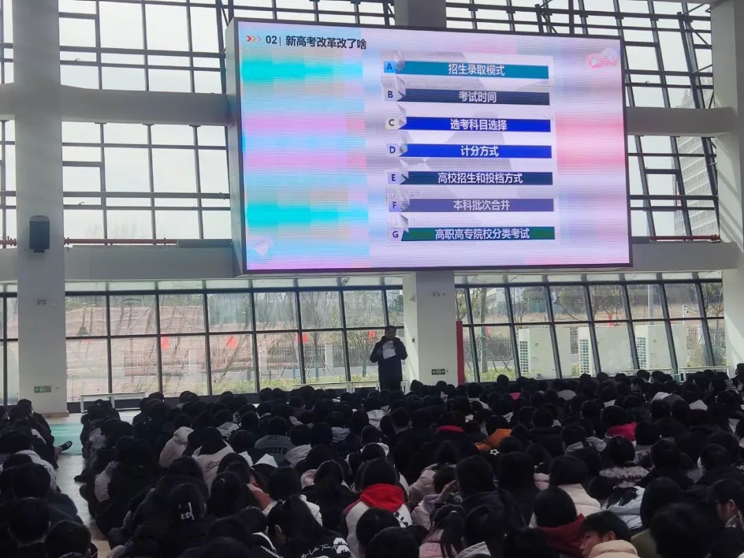 在新高考改革的背景之下,高中选科与大学招生专业及未来就业的关系愈发密切,而生涯规划教育是构建学生在校学习与社会生活之间的重要桥梁。为精准指导高一学生职业生涯规划,引导和帮助学生更好地认识自我、发展自我,近日,我校举行了2023级高一学生生涯规划指导报告会,全体高一学生和班主任参会学习,新校区同步开展。