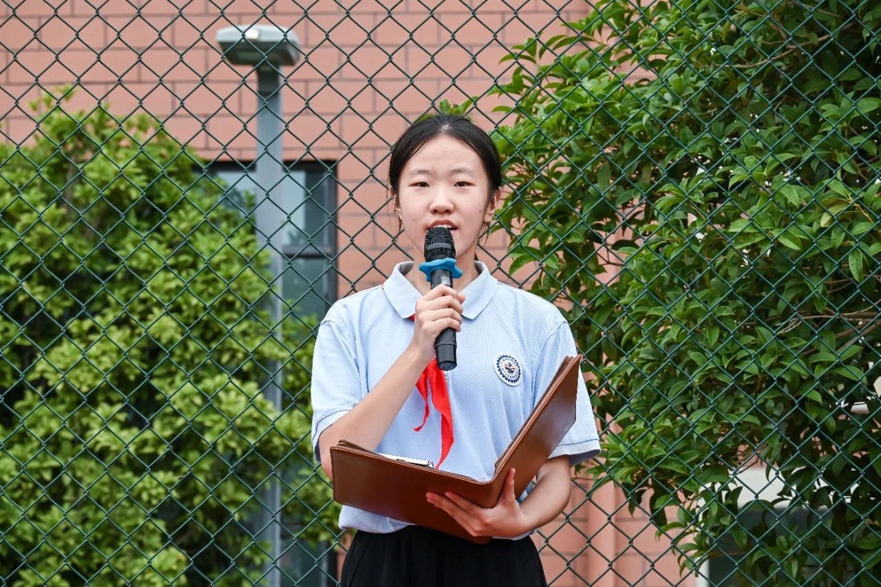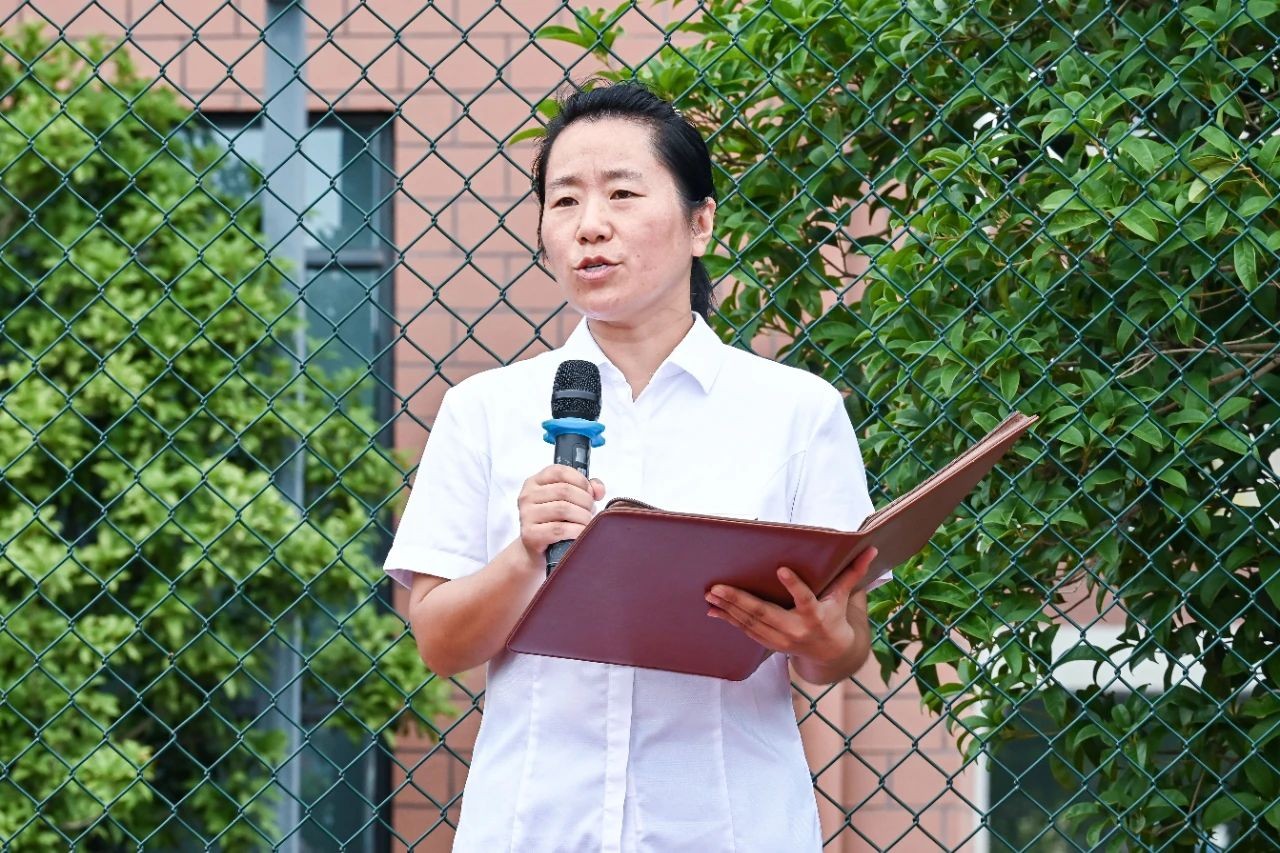 教师代表王茗老师寄语九年级同学们要摒弃杂念,耐住寂寞;八年级同学们不忘初心,力戒浮躁;七年级的新同学们面带笑容,开启新生活!学生代表徐琬婷同学发言:新的学期要做到明确个人目标、积极参与课外活动,惜青春之时,立鸿鹄之志,享拼搏之美,成栋梁之材!