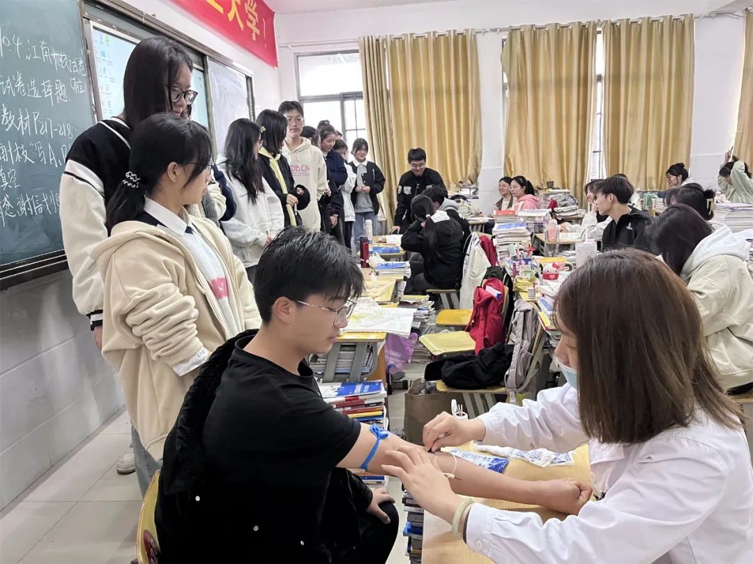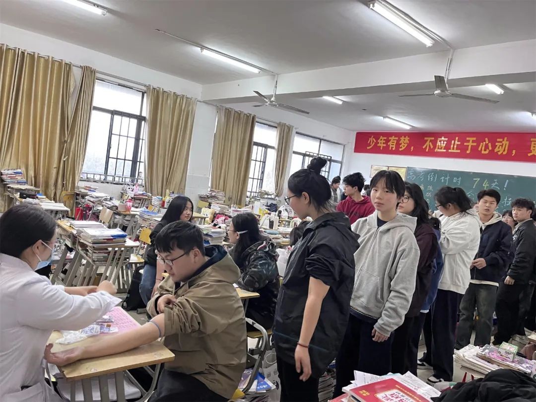 抽血检查采取进班抽血的方式,让学生在自己最熟悉的教室里完成抽血,既舒缓了学生紧张情绪,又提高了效率,让学生得到充分关爱。针对个别学生有可能出现的采血后头晕、低血糖等现象,学校还准备了葡萄糖口服液等,为学生做好充分保障。