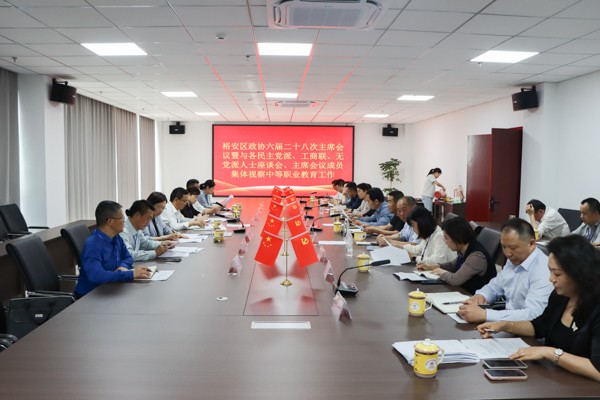 4月26日下午,区政协六届二十八次主席会议暨与各民主党派、工商联、无党派人士座谈会、主席会议成员集体视察中等职业教育工作活动在我校举行。区政协党组书记、主席聂贵廷,区政协副主席陶晓婉、罗荣、杨孝清、魏璇、朱丽,秘书长余玉亮出席。区各民主党派、工商联及知联会、新联会和区委统战部、区教体局负责同志出席,安徽天河教育集团董事长张运来陪同视察。