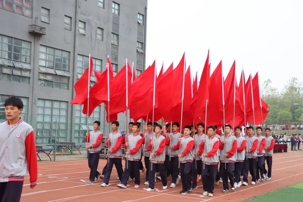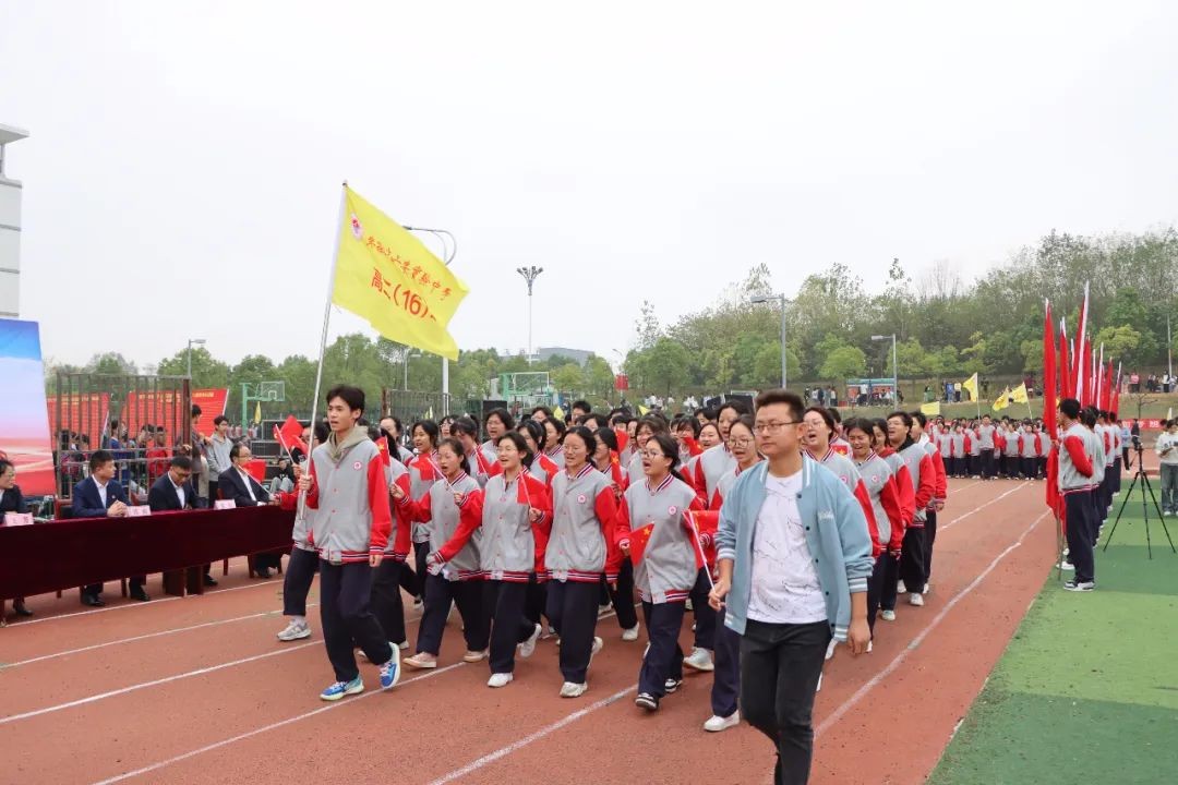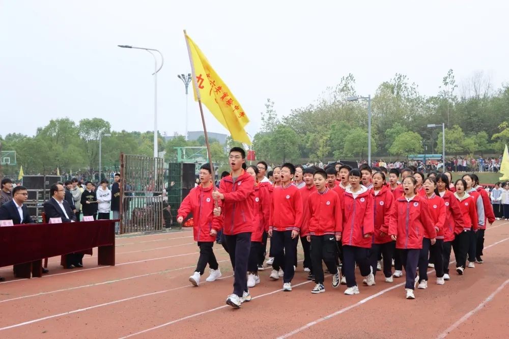 伴随着振奋人心的《运动员进行曲》,初中部、高一、高二同学组成的班级方阵,以及为本届校运会保驾护航的学生会方阵和裁判员方阵,踏着整齐地步伐,喊着嘹亮的口号,走过主席台,接受校领导的检阅。他们英姿飒爽,意气风发,充分展现了实验师生的青春朝气和昂扬风貌。