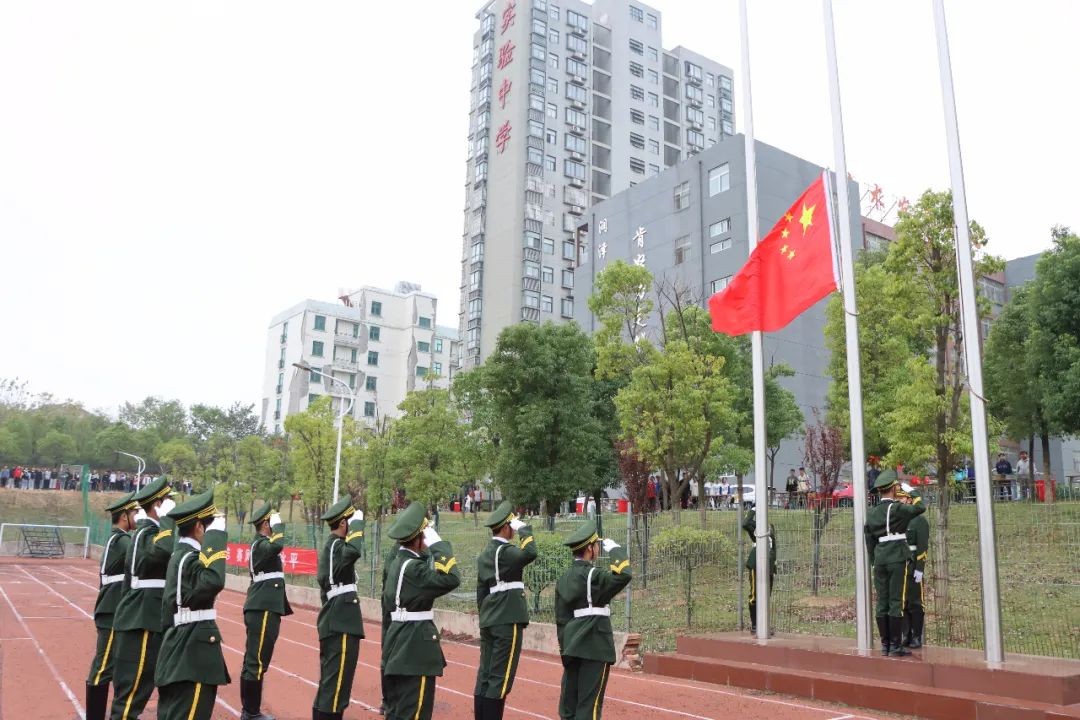 入场仪式结束后,举行了盛大的升旗仪式。全场师生起立,奏唱国歌,行注目礼。