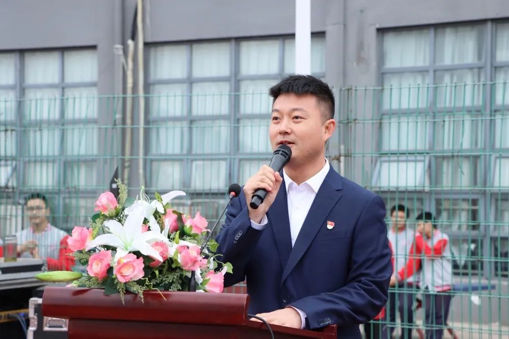 代执行校长张兵致开幕词。他简单回顾了我校高度注重学生体育教育而采取的多样举措,和近年来在各类体育竞赛中取得的丰硕成果;强调青少年积极参与体育运动本质上就是参与体育强国建设,就是参与民族复兴的伟大进程;希望全体师生在运动会中展现良好风貌,以优异的成绩为党的二十大献礼!最后预祝全体运动员都能取得佳绩,本届运动会获得圆满成功!