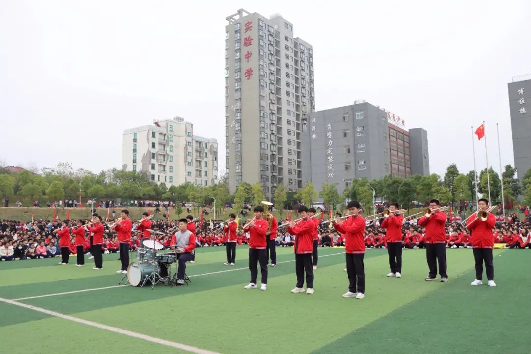 精彩的文艺表演将开幕式推向高潮。啦啦操表演《yes ok!》,用活力展示实验学子的蓬勃朝气;架子鼓表演《青春》,用强劲的鼓点表现青春的律动;中国舞《墨》,用柔美的身姿为大家带来一场视觉盛宴;管乐合奏《红色记忆》,用激昂的旋律让全场激情燃烧、热血沸腾。