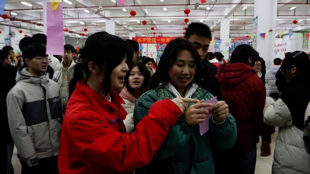 猜出谜底的同学们兴奋地奔向领奖台,紧张询问自己是否猜中,猜中的同学拿着小奖品喜笑颜开;即使没有猜中,却也并不气馁,很快又投入到下一轮的猜谜活动中去,活动现场飘荡着欢声笑语,洋溢着节日喜庆祥和的气氛。