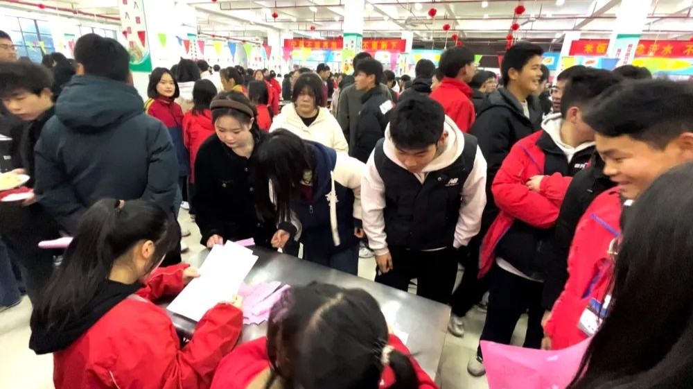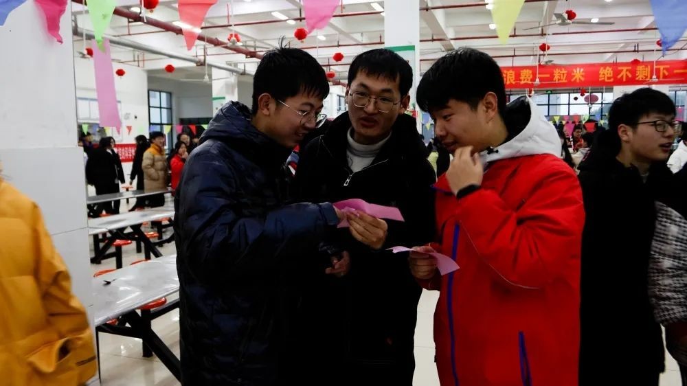 高三年级部、后勤、食堂做了精心准备,高挂的红灯笼、飘扬的彩旗,为节日增添了浓厚的氛围,以传统文化常识、地理历史知识、生活百科、字谜等为内容设置的灯谜,既有娱乐性,又有知识性。大家热情高涨,或驻足观看,或低头沉思,或互相讨论,认真思考谜底。