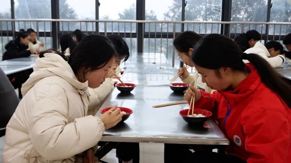 “吃汤圆去喽”,猜过灯谜的同学三五吆喝着一起去品尝食堂免费提供的美味的汤圆。同学们一边吃着汤圆,一边聊着开心的话题,欢快的笑声飘荡在食堂各个角落,一颗颗晶莹剔透、圆润饱满、甜滑爽口的汤圆,饱含了学校对大家的温暖关爱和美好祝福。