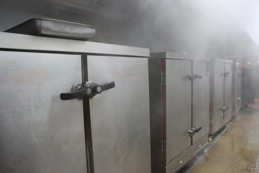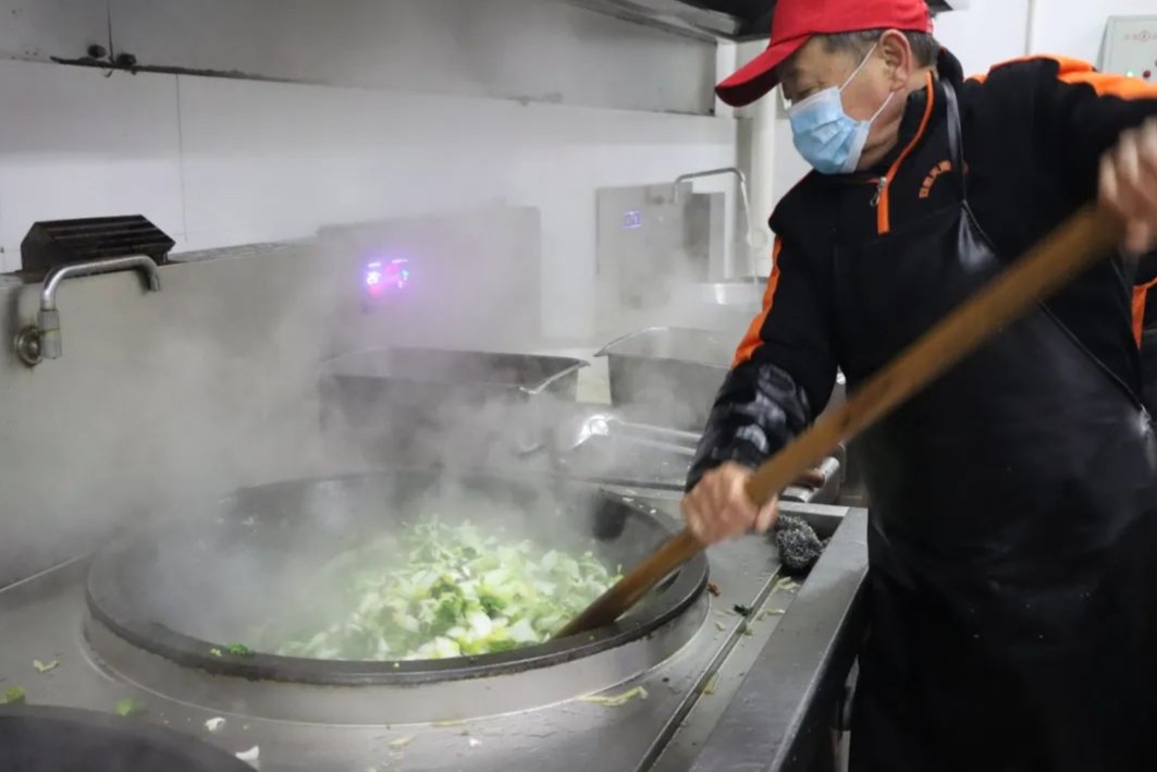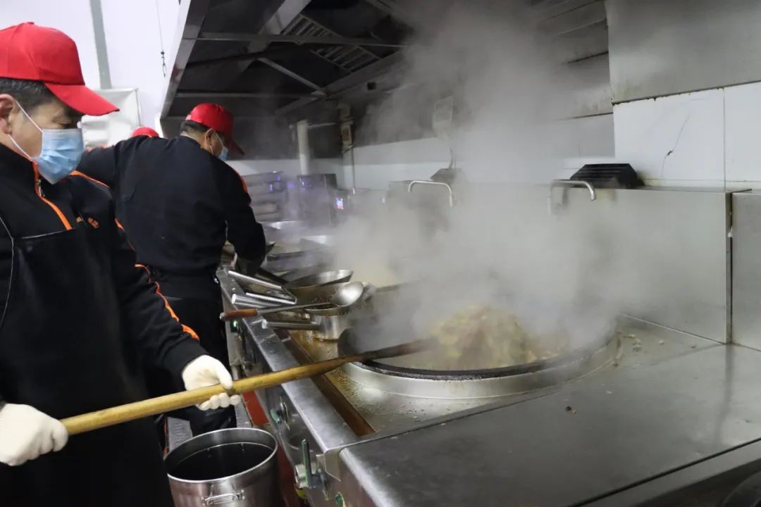 自降温以来,餐厅员工充分利用各种设施设备对菜肴进行保温,有保温售卖台、菜肴专用保温箱、电热保温桶、蒸汽车等。当大家排队等待取餐的时候,蒸汽弥漫的氛围给人一种无比温馨的居家感觉。热乎乎的餐食维持了刚出锅时的良好口感,让人食欲大增。