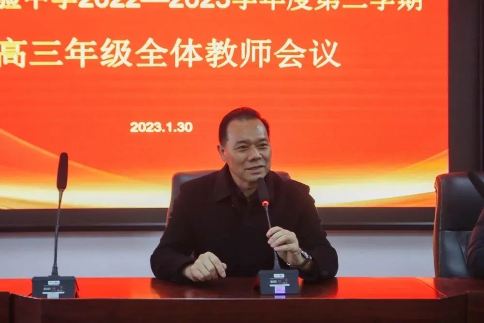 最后,校董事长张运来作总结讲话。他首先向全体教师致以新春问候,2023年是学校第二个十年的开局之年,开局关乎全局,起步决定后程。全体教师要坚定信心,满怀热情,为高三学生、全校师生做好榜样。责任不只是担当,更是使命,在最后四个多月里要高度统一思想,对家庭和生活做好规划,埋头苦干,顽强拼搏,打胜仗,开好头。学校也将一如既往地为教师和学生全方位做好各项保障服务,全力为高三保驾护航。