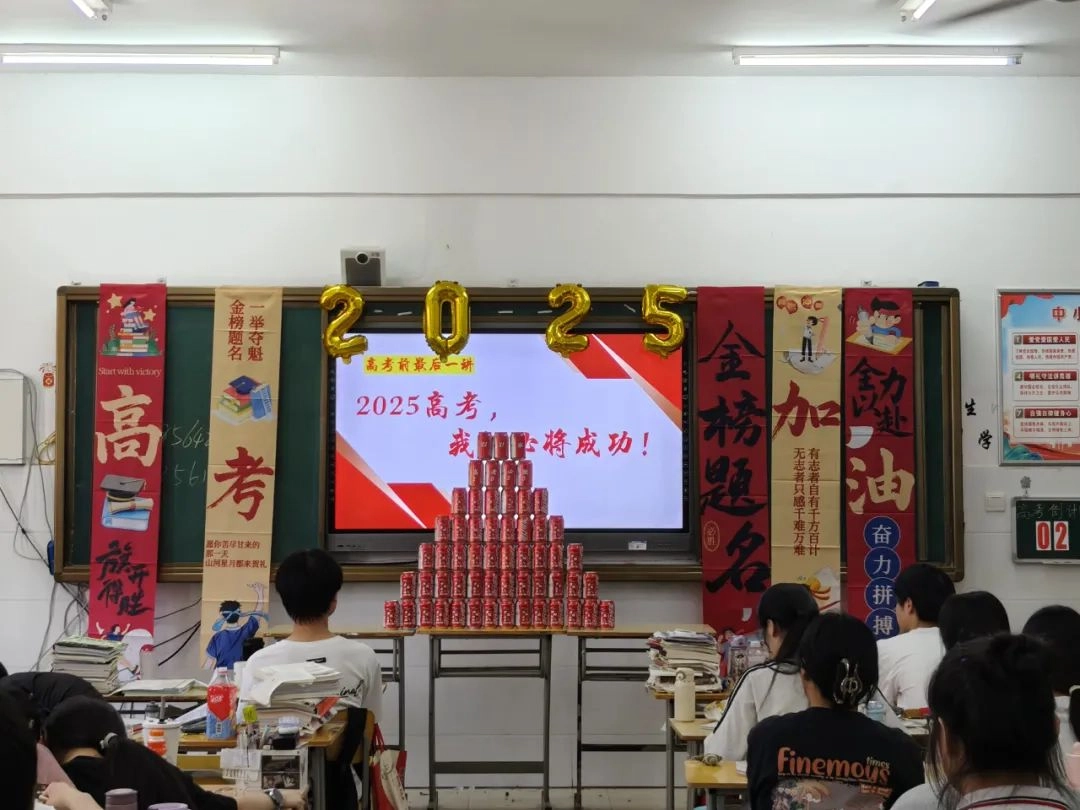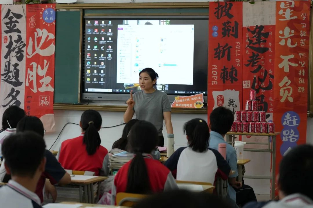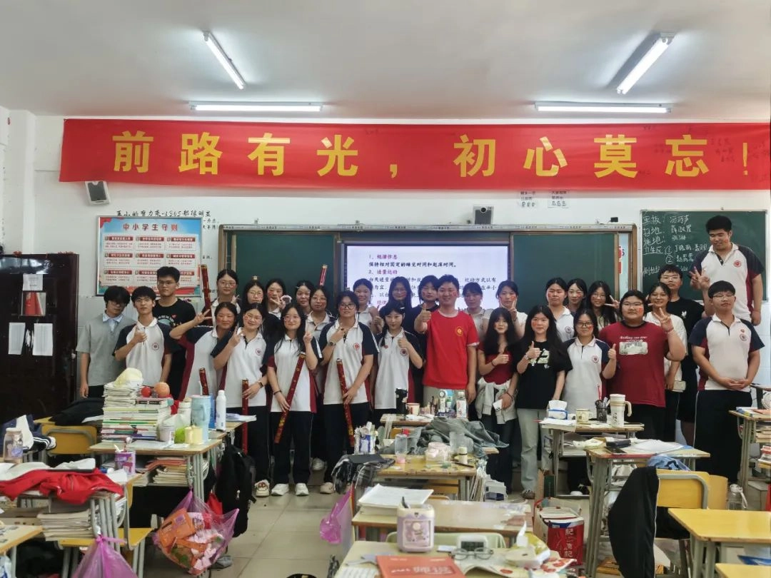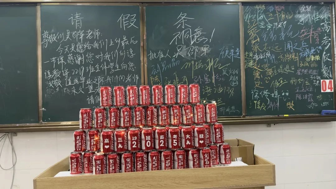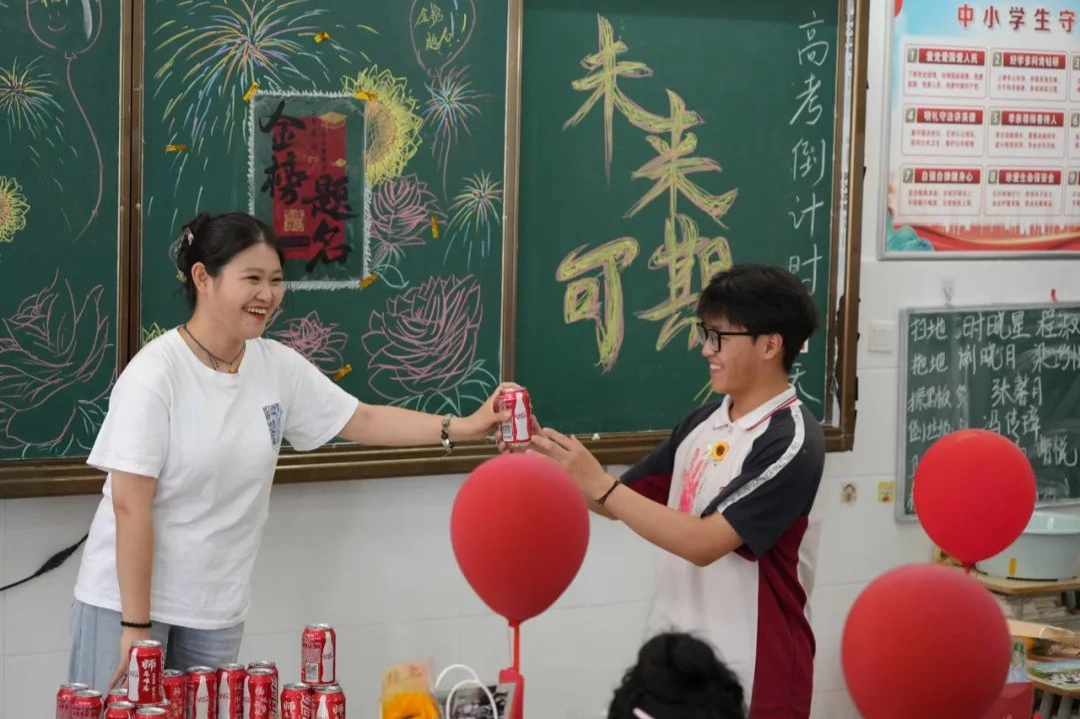 班主任化身能工巧匠 将鼓励藏进门楣高悬的粽子 将祝福写满黑板角落的星语心愿 一枚枚定制的“金榜题名”的手链 一罐罐寓意着“逢考必赢”的可乐 是最接地气的“法力加持” 请以笔为戈 以卷为疆 在这流火的六月 尽情挥洒你们的璀璨光华