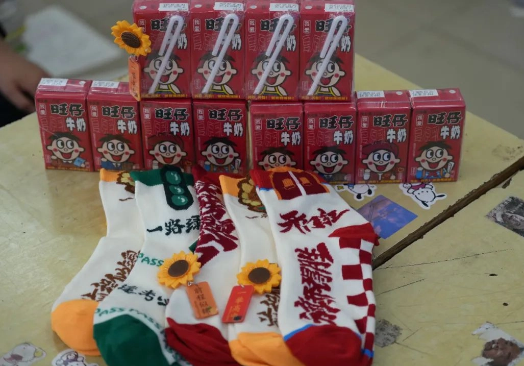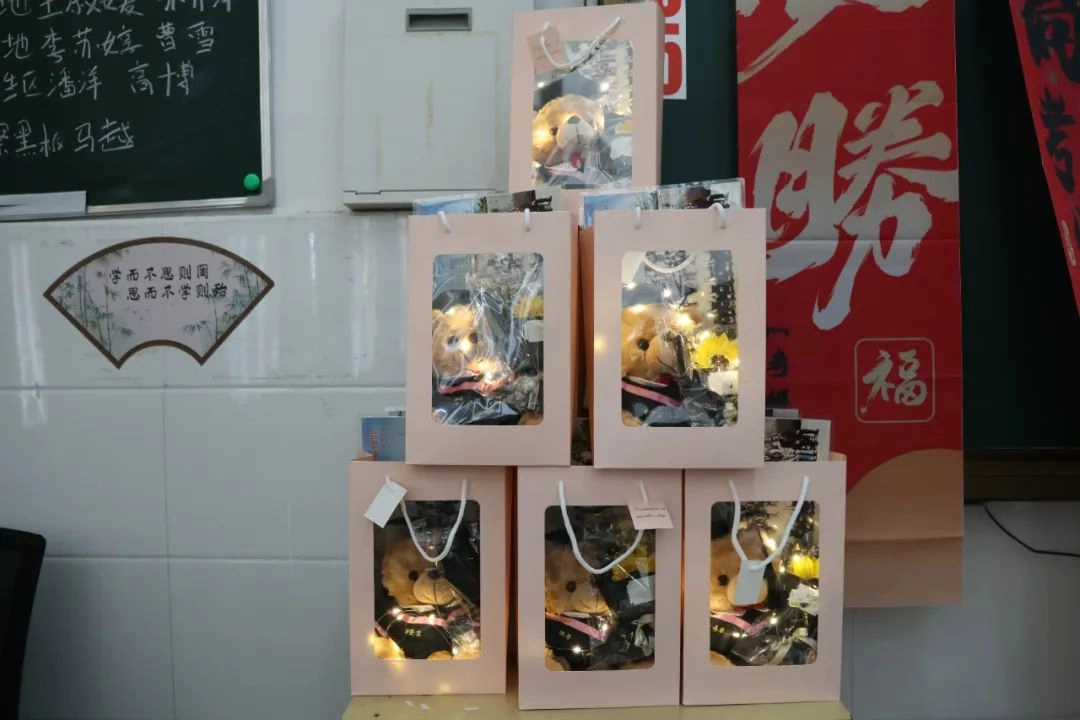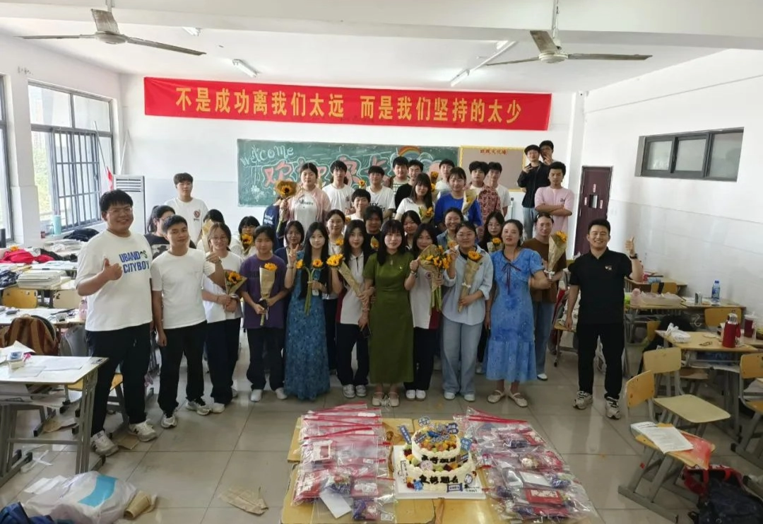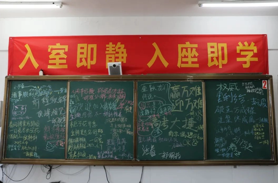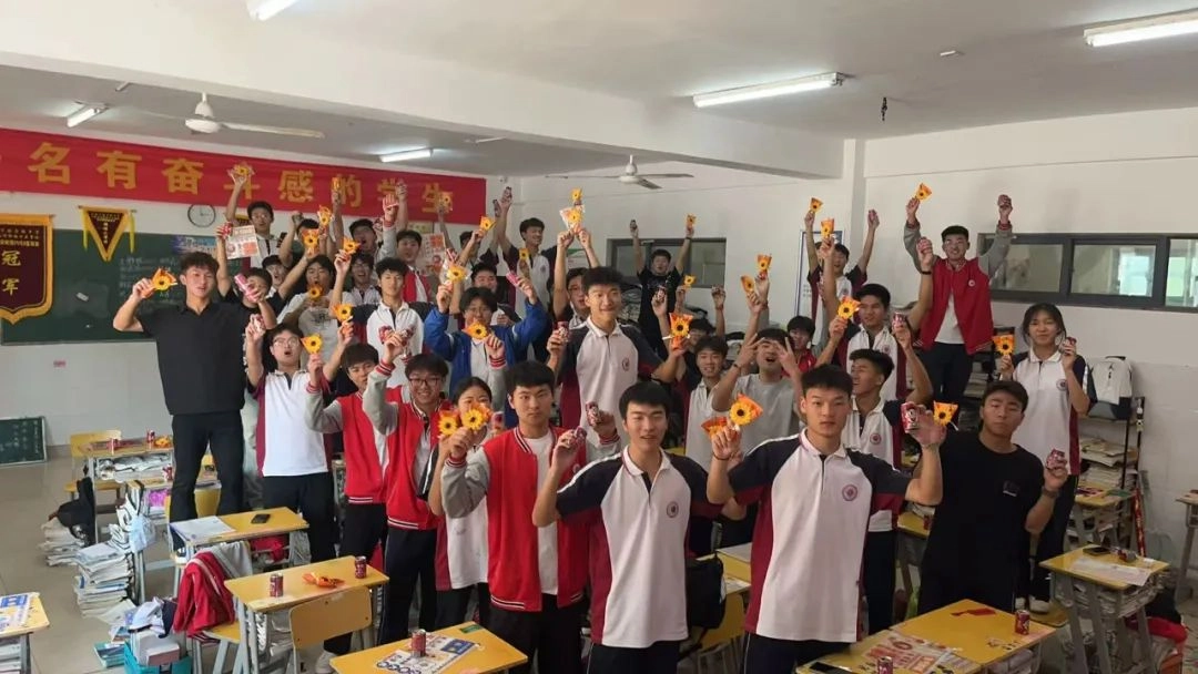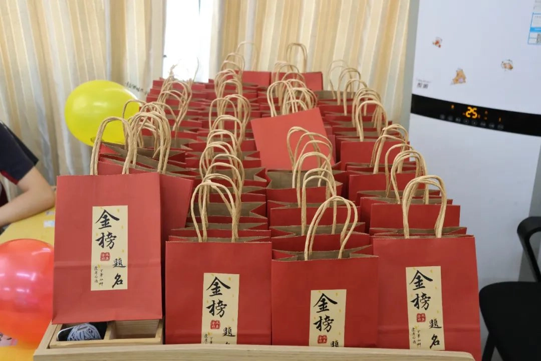 班主任化身能工巧匠 将鼓励藏进门楣高悬的粽子 将祝福写满黑板角落的星语心愿 一枚枚定制的“金榜题名”的手链 一罐罐寓意着“逢考必赢”的可乐 是最接地气的“法力加持” 请以笔为戈 以卷为疆 在这流火的六月 尽情挥洒你们的璀璨光华