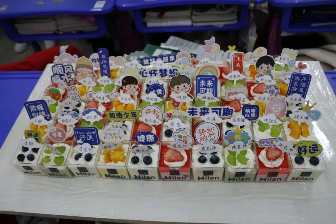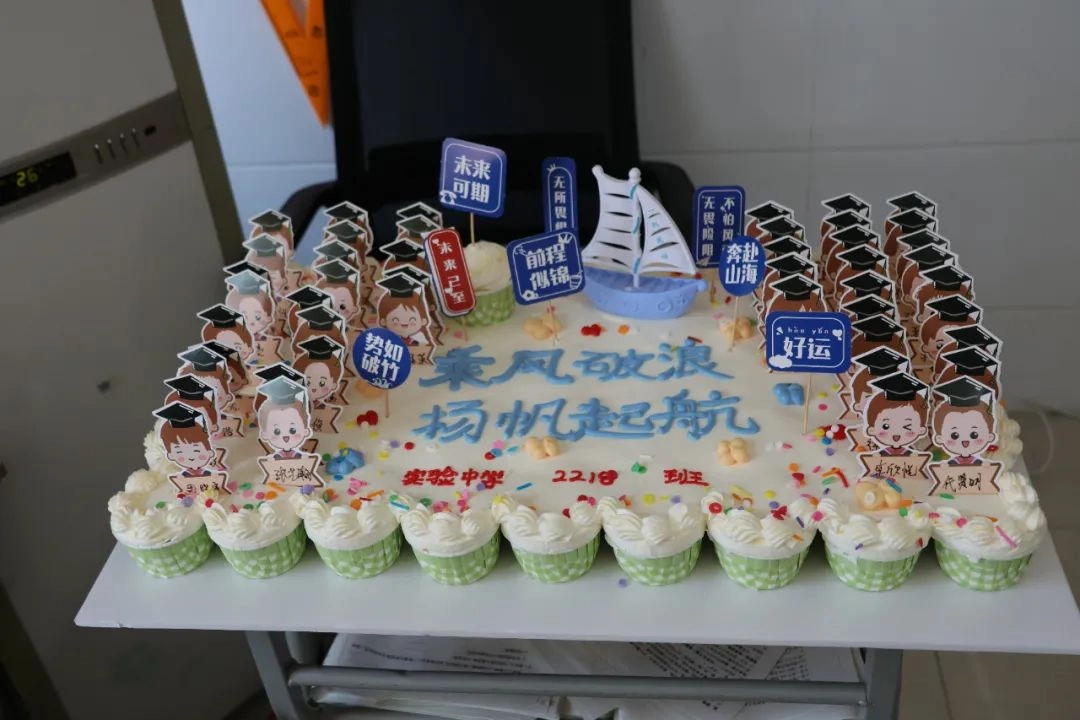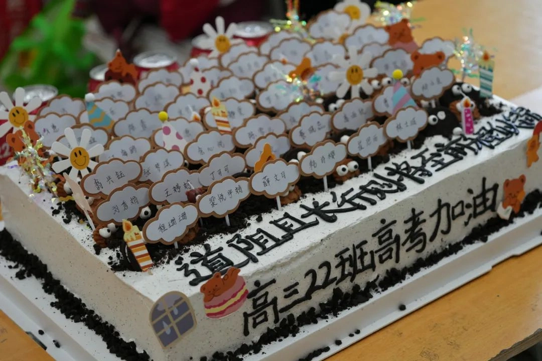 饱含祝福的送考蛋糕悄然登场 烙印着金榜题名的巧克力牌 每一口奶油都饱蘸着期盼与鼓舞 每一片礼花都喷发着热烈与滚烫 是出征前最温暖甜蜜的“能量补给” 请带上这份专属祝福 在青春的答卷上 刻下属于你们的辉煌印记