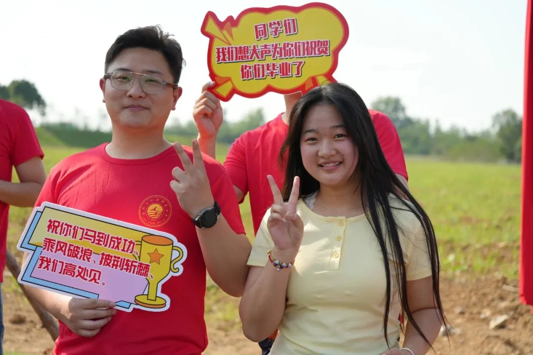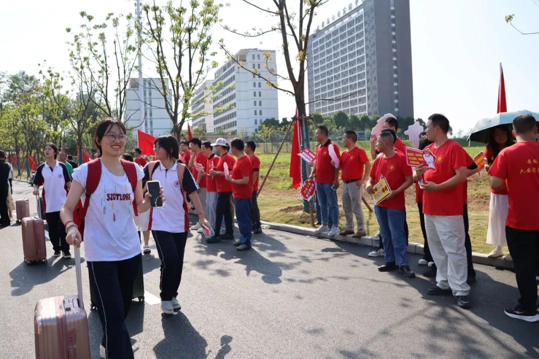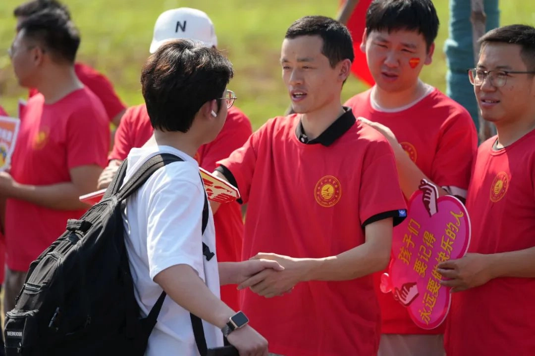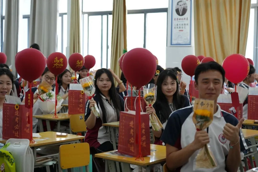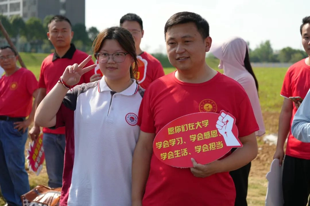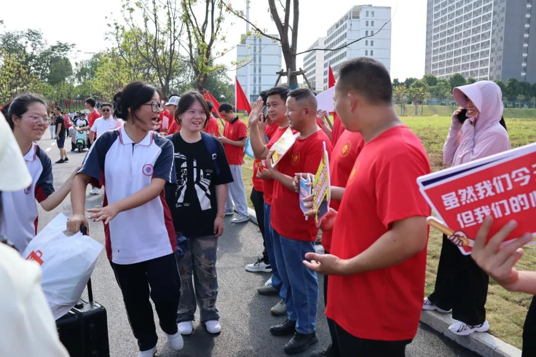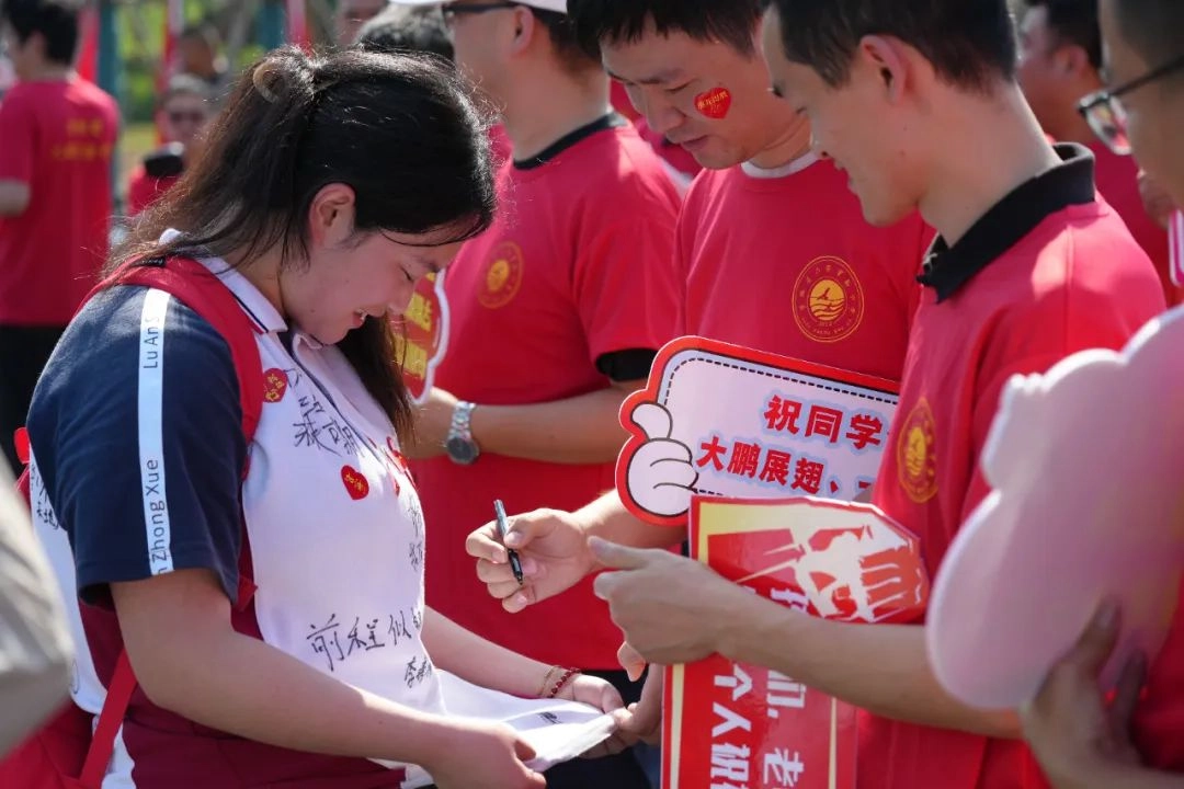 班主任身着统一高考加油T恤 列成一道耀眼的“开门红”长廊 少年们穿过爱与守护铸成的通道 身后是师长们无声却炽热的目送 去吧!带着这份母校给予的力量 努力拼搏书写人生的华章!