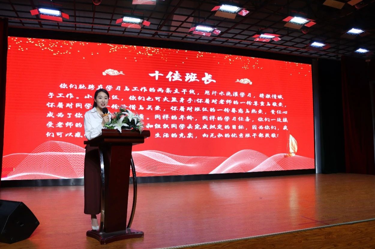 最后,执行校长张兵发表讲话。他首先对获得表彰的同学们表示了祝贺。他说到:优秀是一道光,可以温暖别人,也可以照亮自己的前程,实现人生价值。随后他以2022感动中国十大人物的事迹激励同学们,青春在奋斗中才能发光,理想在拼搏中才能飞扬,新时代青年要肩负起历史使命,去努力创造无愧于党、无愧于人民、无愧于时代的业绩,努力成为实现中华民族伟大复兴的先锋力量。